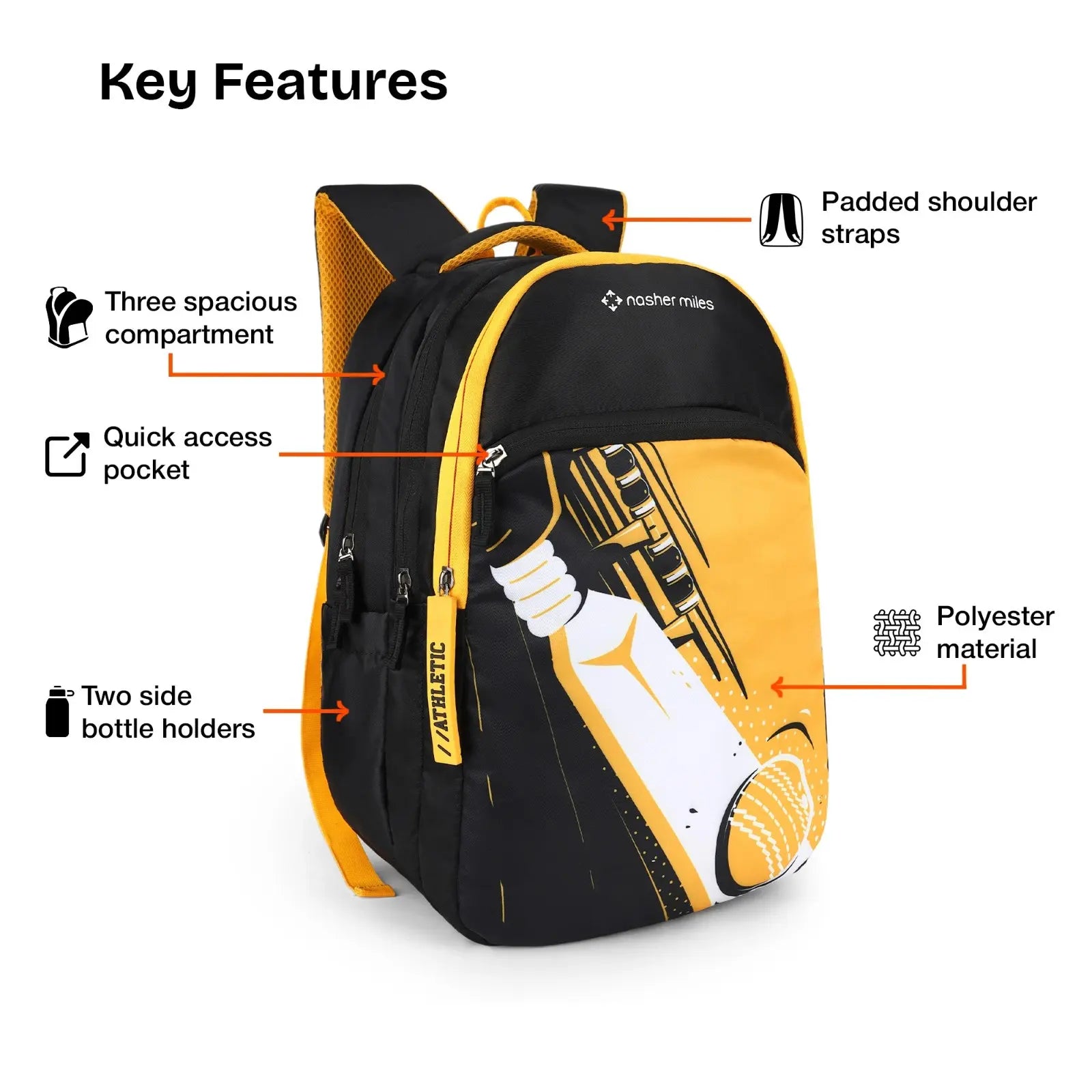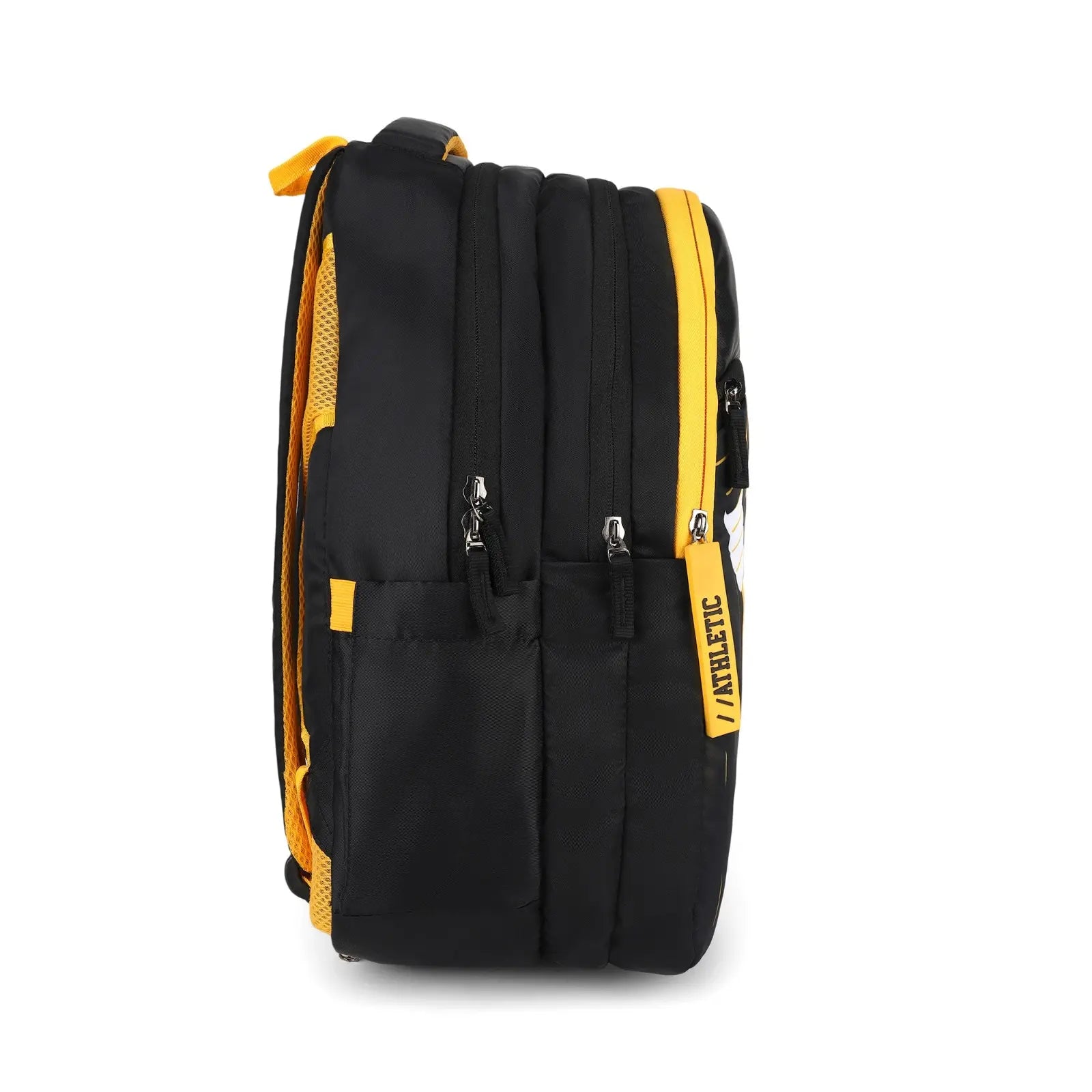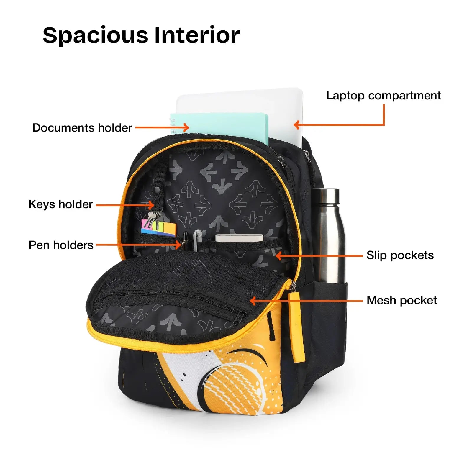 Structured Storage Layout: This backpack features a front zipper quick-access compartment for daily essentials. The first compartment provides dual-side organization with a mesh zipper pocket & slip pockets on one side, and a zipper pocket, slip pockets, and pen holders on the other. The spacious main compartment fits books and documents, while the third compartment includes a dedicated laptop section with a zipper pocket. Two outside bottle pockets add extra convenience.