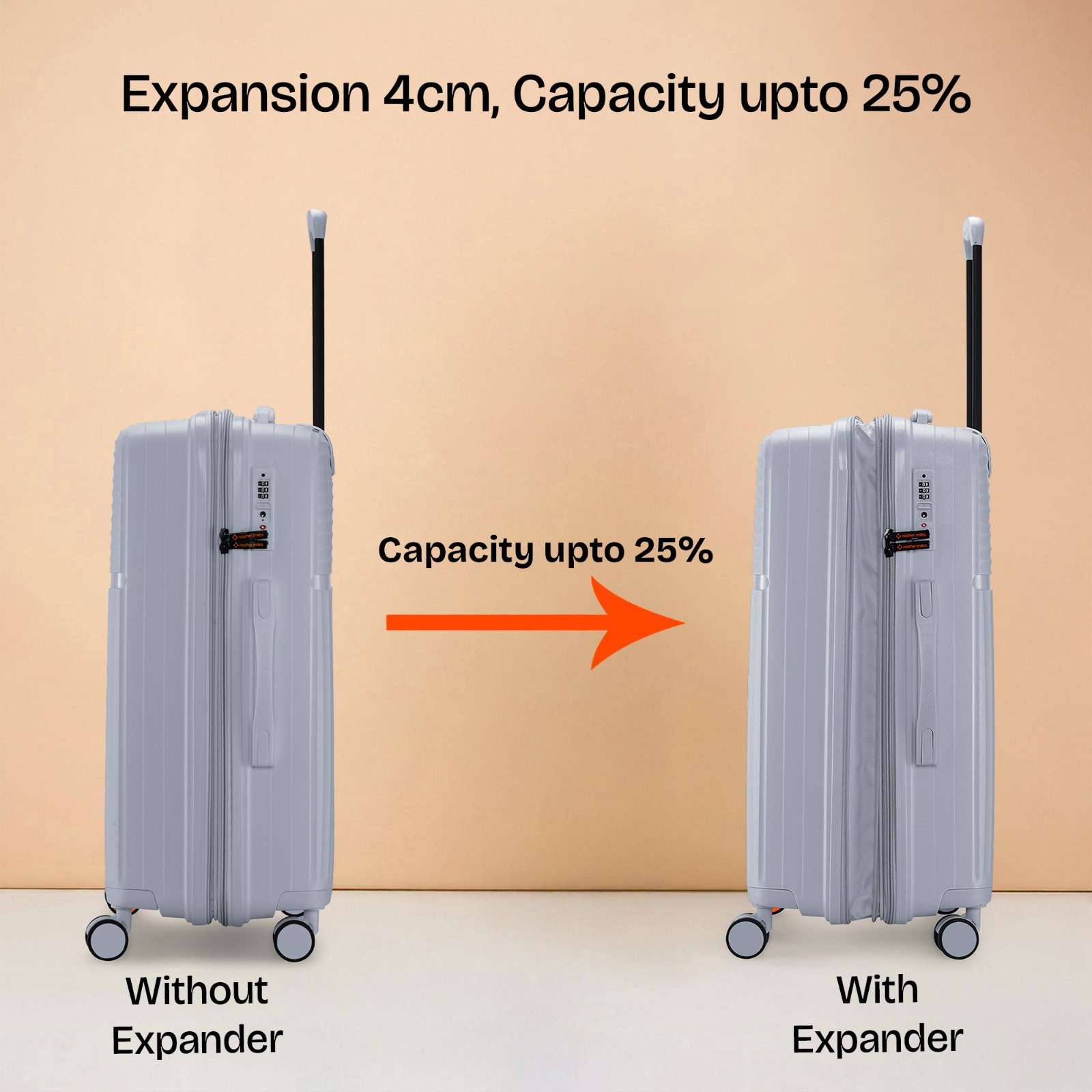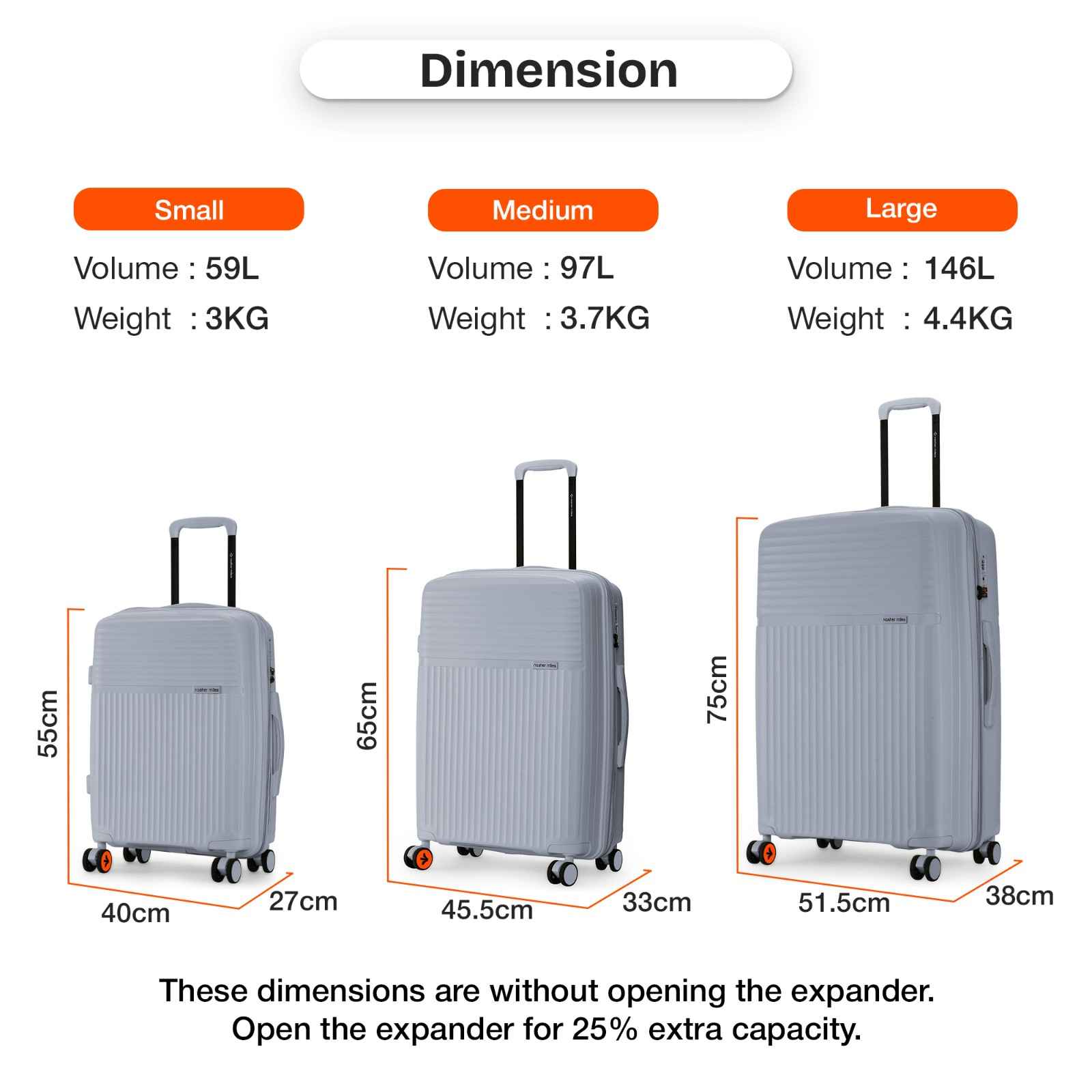 up to 20kg of weight and the large-sized luggage can carry up to 25 kg of weight.