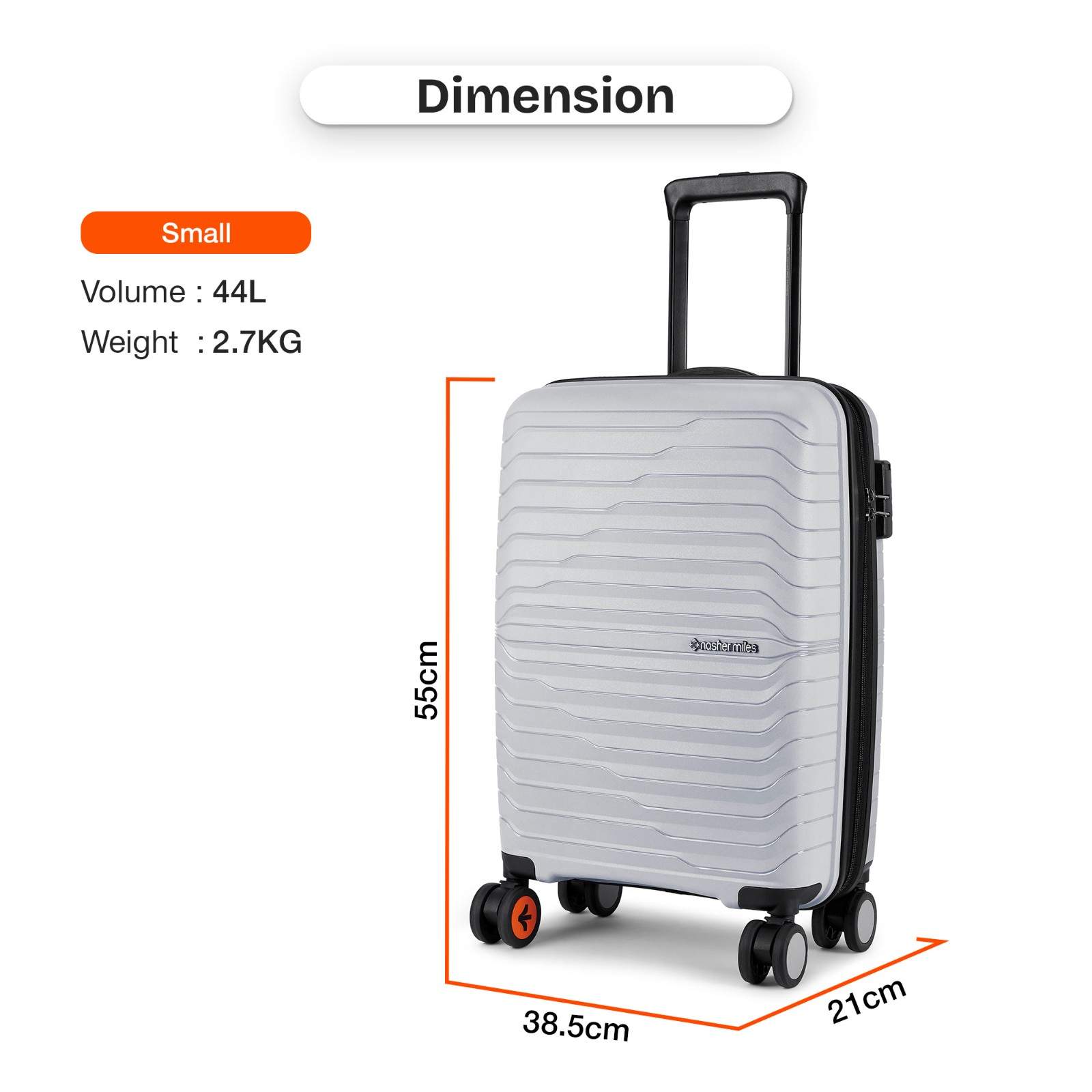 Carry-On Small (S): With a compact 20-inch size, this carry-on suitcase is ideal for travel duration ranging from 1 to 5 days, making it the perfect companion for weekend getaways, business trips, or quick vacations. Suitcase can hold weight up to 8 Kg.