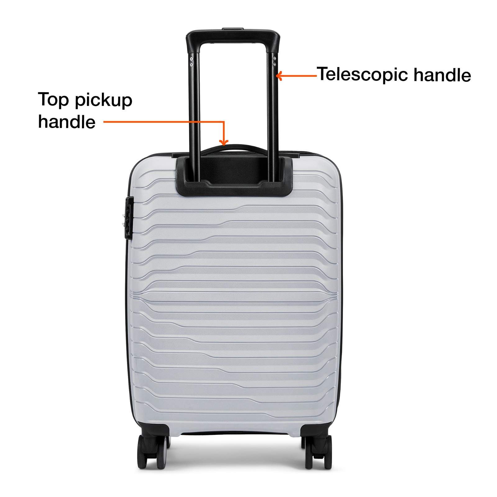 Durable Construction: Outer material of the luggage trolley is designed with high-quality unbreakable polypropylene material for exceptional durability and a lightweight feel. This suitcase offers protection to keep your belongings safe. The telescopic handle is made of aluminum for easy handling.