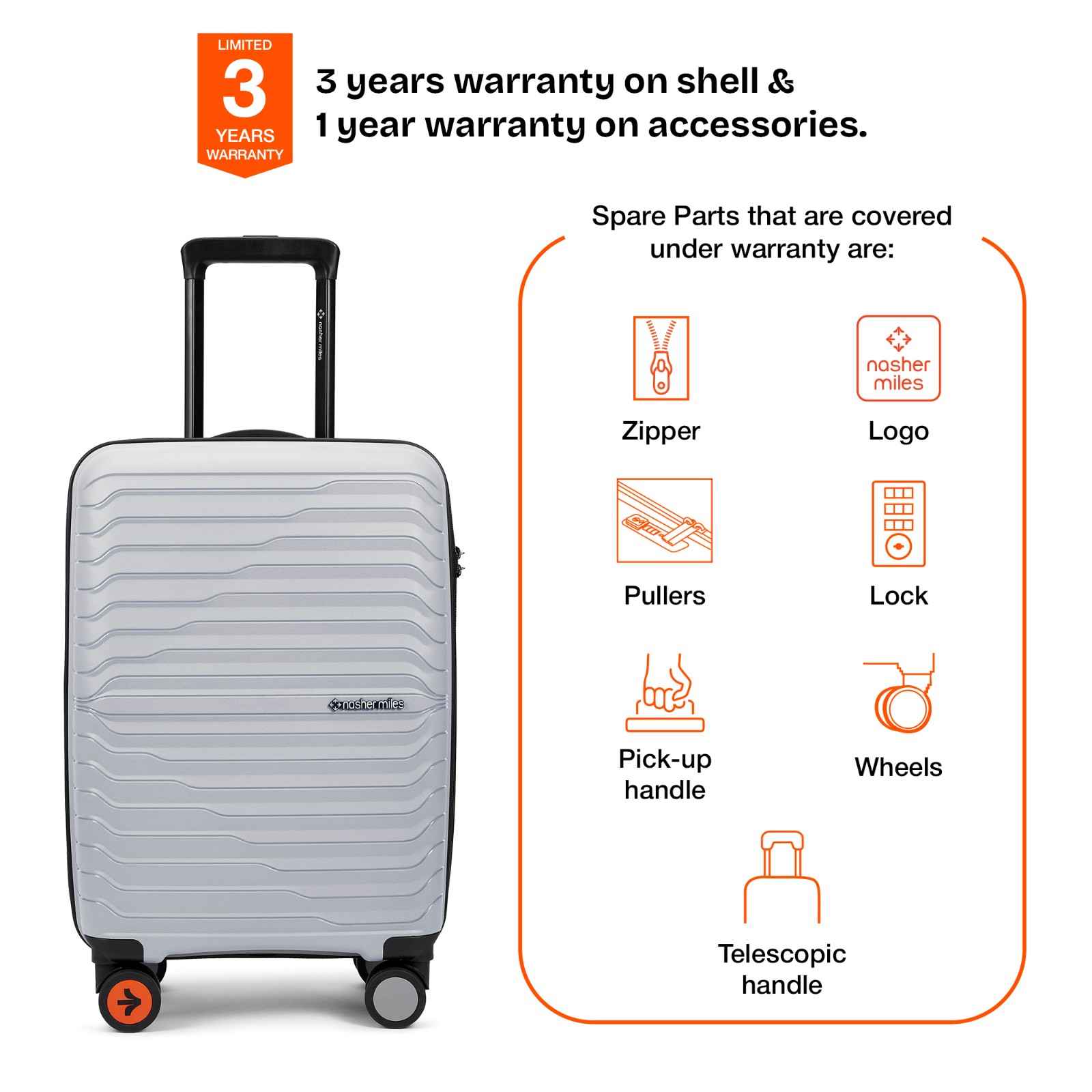 Warranty: 3 Years warranty on shell & 1 year warranty on accessories. Wear & tear for product under use and scratches are not covered.