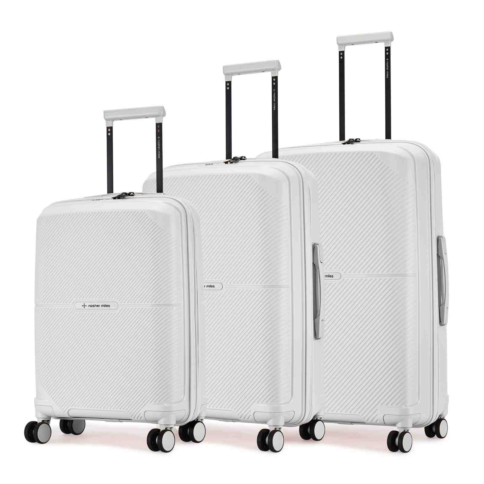Lightweight Hard-Side 3-Piece Luggage Set: This versatile set includes small (55 cm), medium (65 cm), and large (75 cm) sizes, all crafted from unbreakable polypropylene for exceptional protection during your travels. The small cabin luggage is designed to carry up to 15 kg of weight and the medium-sized luggage can carry up to 20kg of weight and the large-sized luggage can carry up to 25 kg of weight.