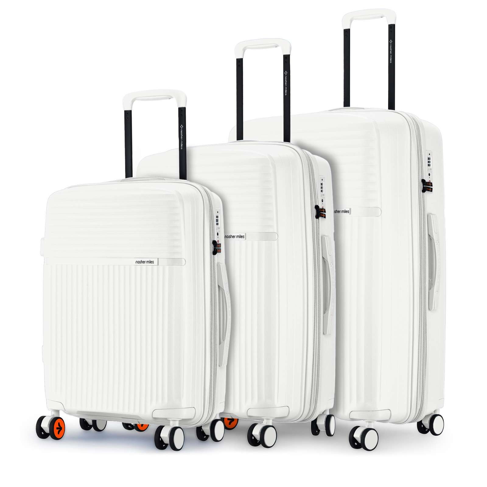 Lightweight Hard-Side 3-Piece Luggage Set: This versatile set includes small (55 cm), medium (65 cm), and large (75 cm) sizes, all crafted from unbreakable polypropylene for exceptional protection during your travels. The small cabin luggage is designed to carry up to 15 kg of weight and the medium-sized luggage can carry