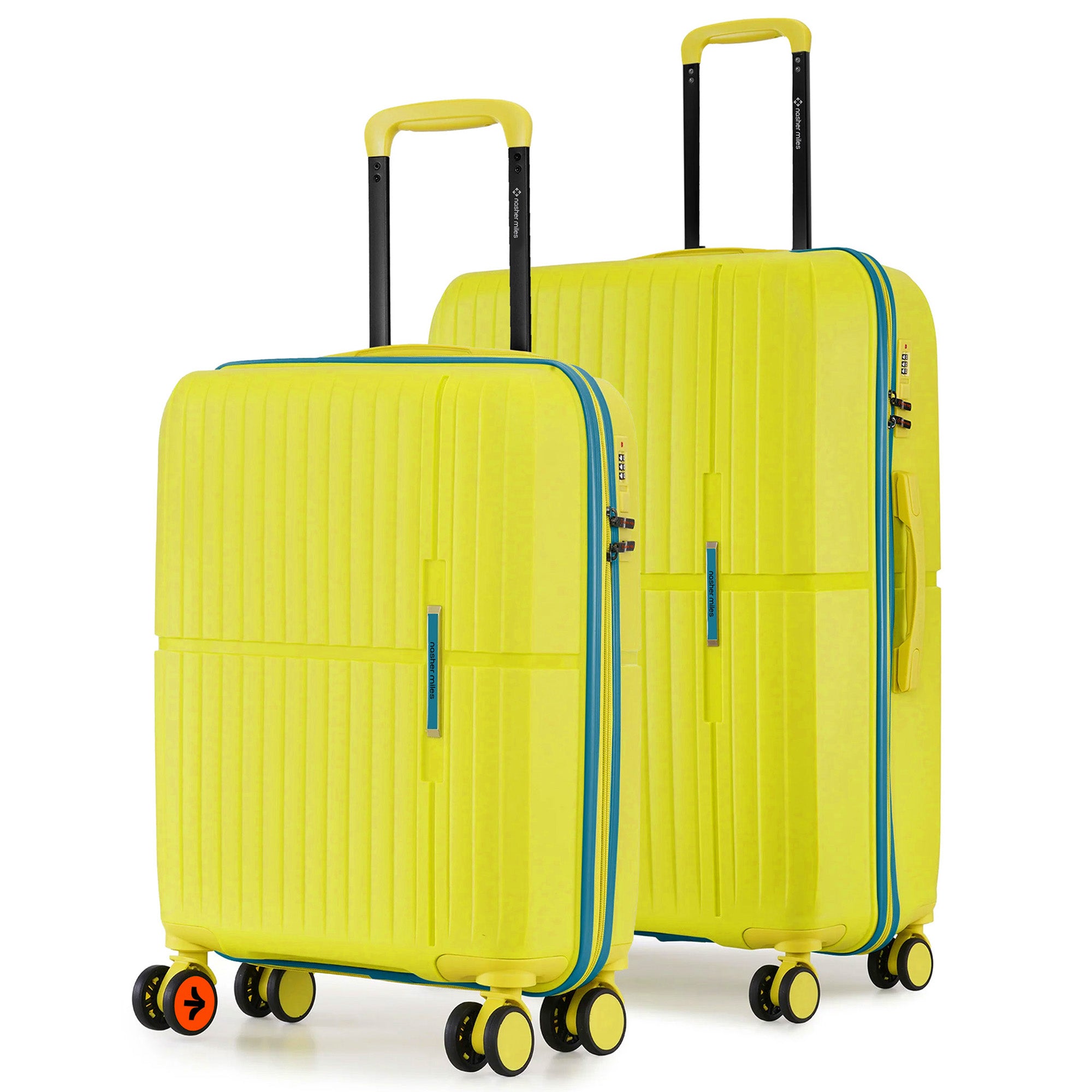 Lightweight Hard-Side 2-Piece Luggage Set: This set includes small (55 cm) cabin luggage and medium (65 cm) check-in luggage, both crafted from unbreakable polypropylene to provide superior protection for your travels. The small cabin luggage is designed to carry up to 10-15 kg of weight and can accommodate materials for a short trip of 2-3 days. The medium check-in luggage can carry up to 20-25 kg of weight and is suitable for longer journeys of 5-7 days or more.