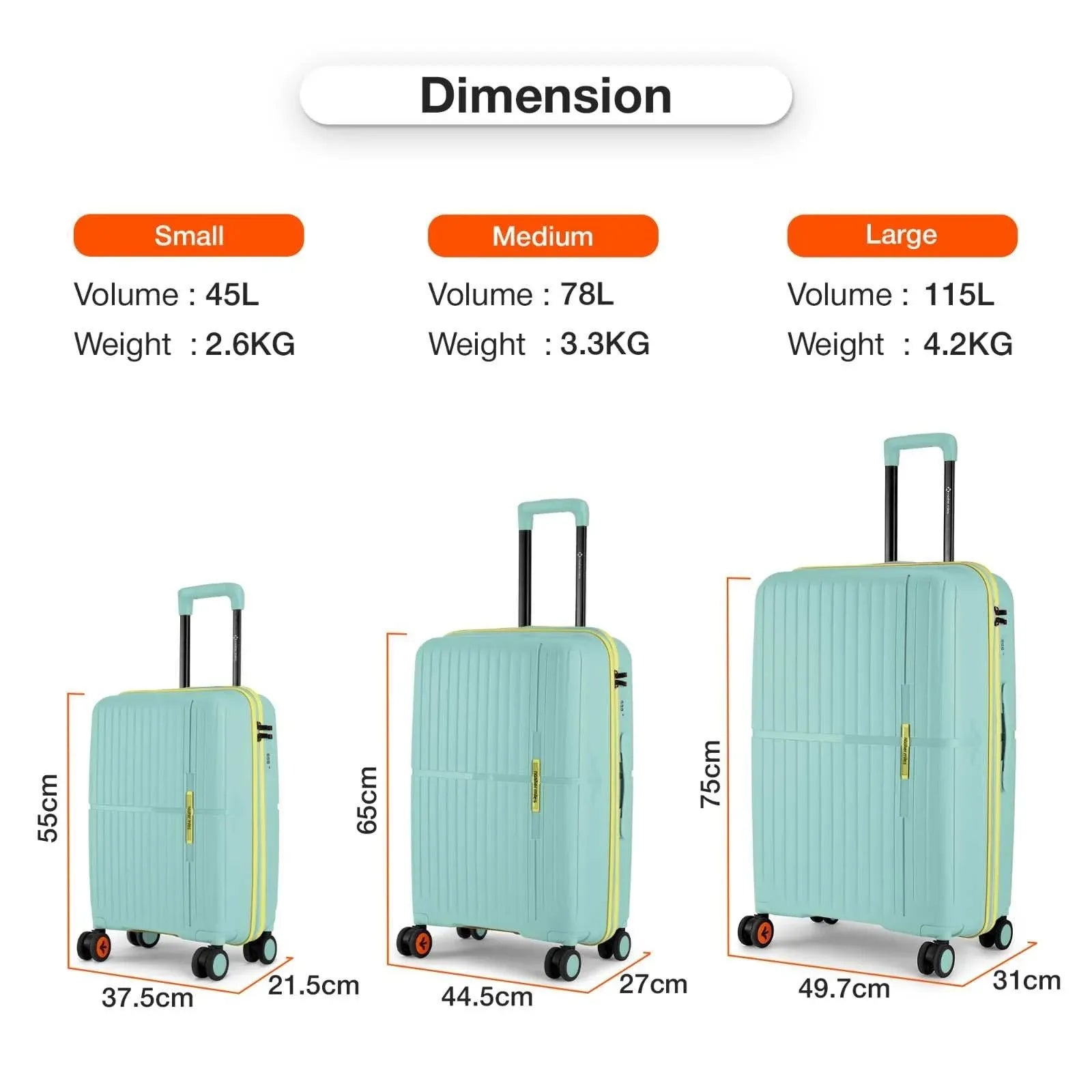 Small (S) Lightweight Hard-Side Cabin Luggage (55cm/20 inches): Travel with our small cabin-sized luggage crafted from unbreakable polypropylene material, offering long-lasting durability and protection for your belongings. This compact yet durable luggage is designed to carry up to 10-15 kg of weight and can accommodate materials for a short trip of 2-3 days.