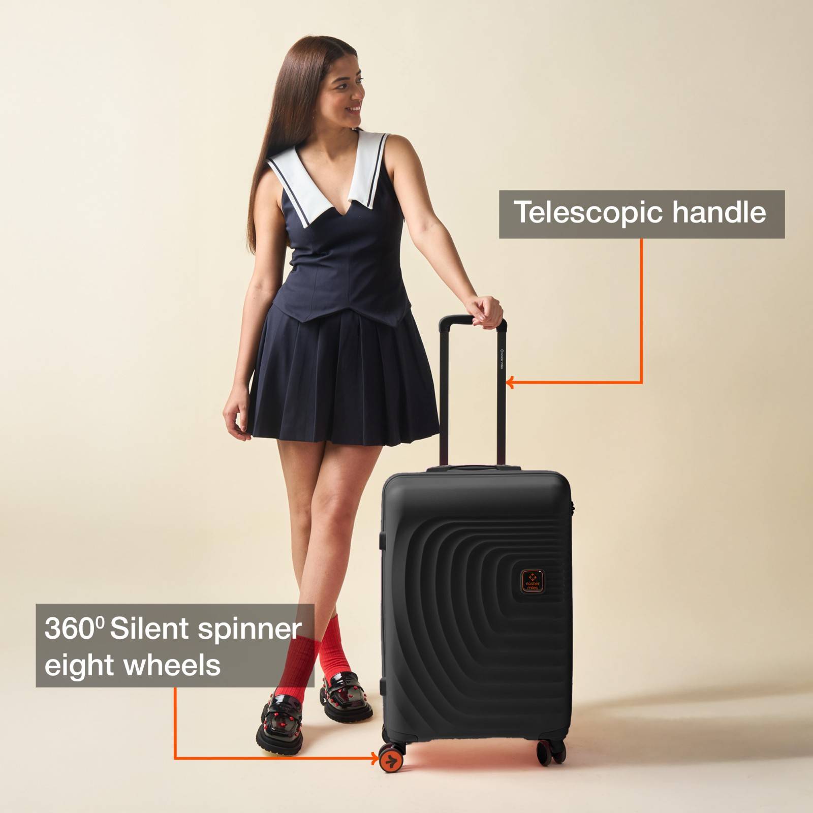 Effortless Maneuverability: The suitcases comes with eight silent spinner wheels that rotate 360-degree for easy maneuverability. The multi-directional design evenly distributes weight, providing unparalleled mobility & glide through airports, train stations and hotel lobbies with ease. Features easy-grab handle on the top and sides.