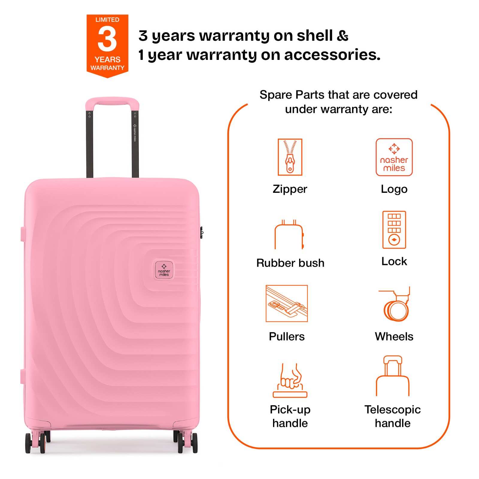 Check-In Large (L): With a 28-inch size, this check-in suitcase is ideal for travel duration lasting than a week, making it the perfect companion for weekend getaways, business trips, or vacations. Suitcase can hold weight up to 20 Kg.