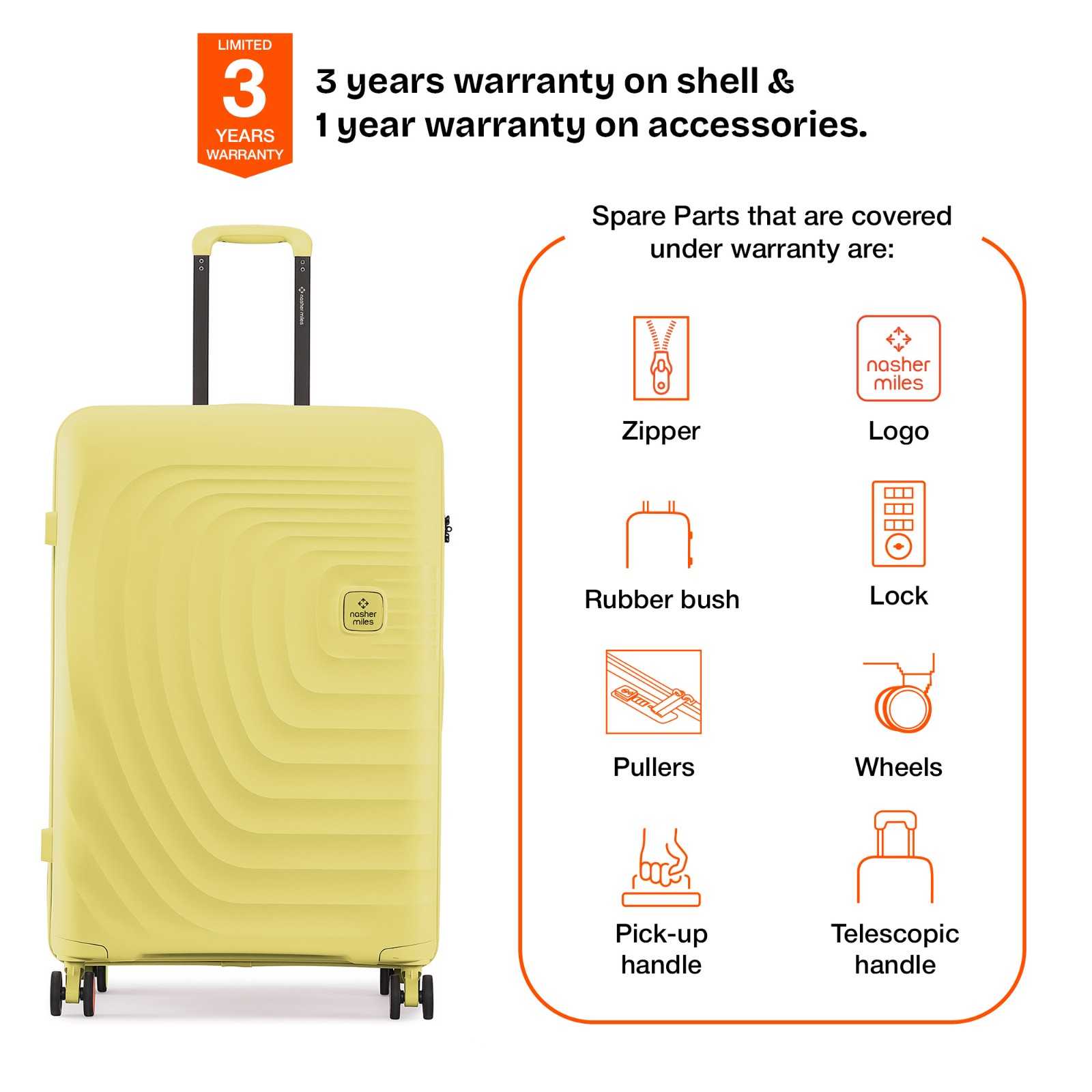 Durable Hard-Shell: Outer material of the luggage trolley is composed of lightweight, long-lasting polypropylene for maximum strength, flexibility, and impact resistance. This suitcase offers protection to keep your belongings safe. The telescopic handle is made of aluminum for easy handling.