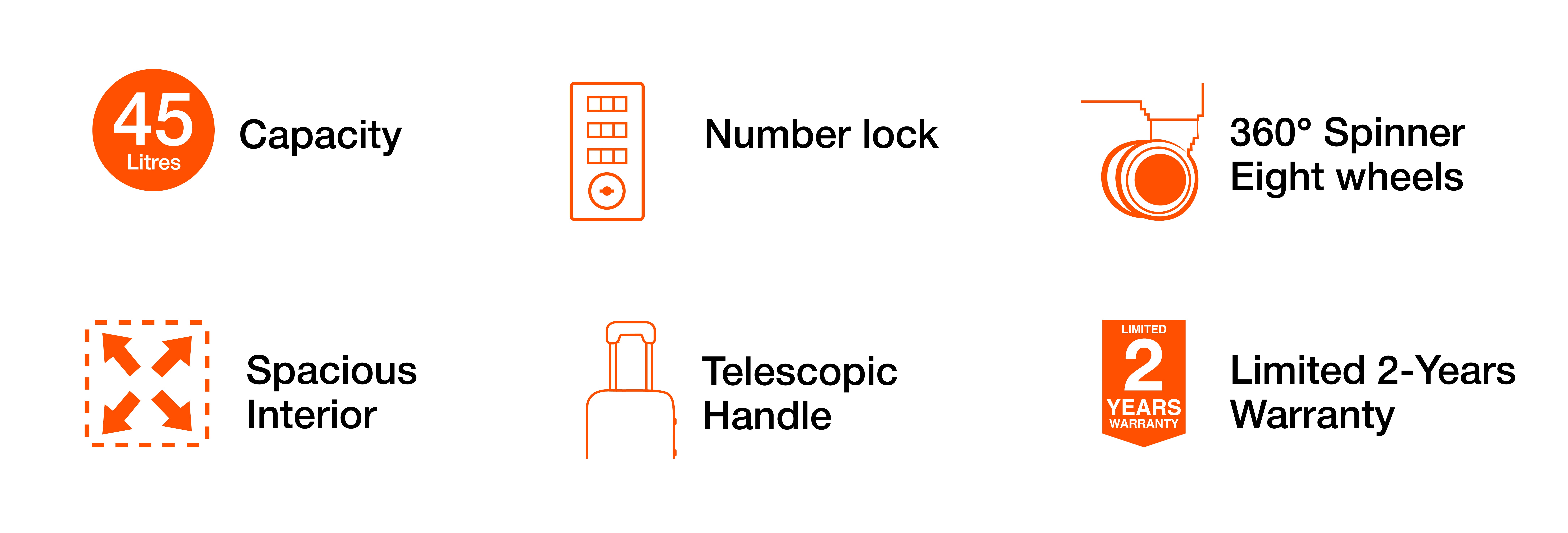 Smooth Maneuverability with Comfortable Grip: Designed with an 8-wheel spinner system and a three-step telescopic handle for effortless navigation, plus a rubberized foam handle for a comfortable grip when lifting or carrying the bag.