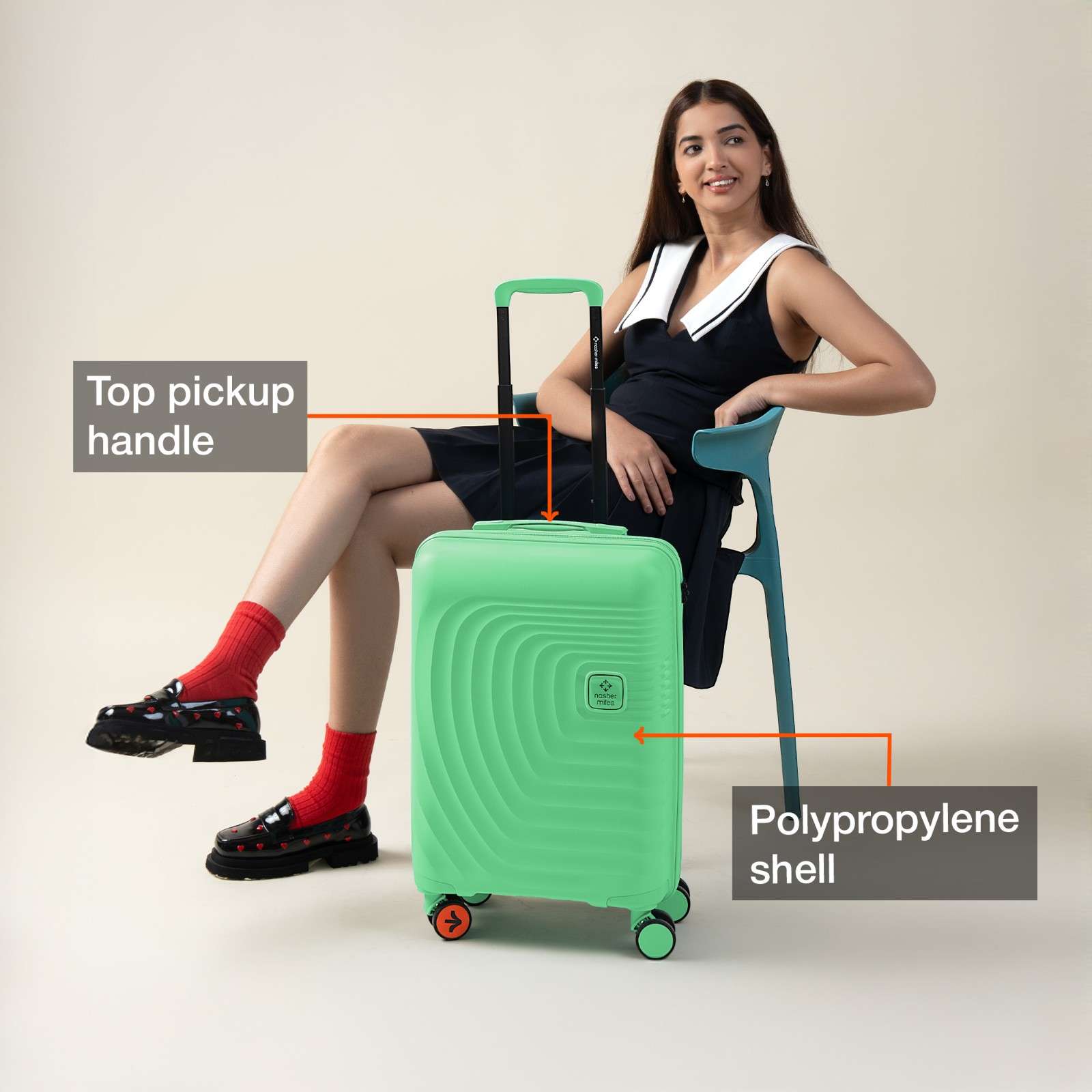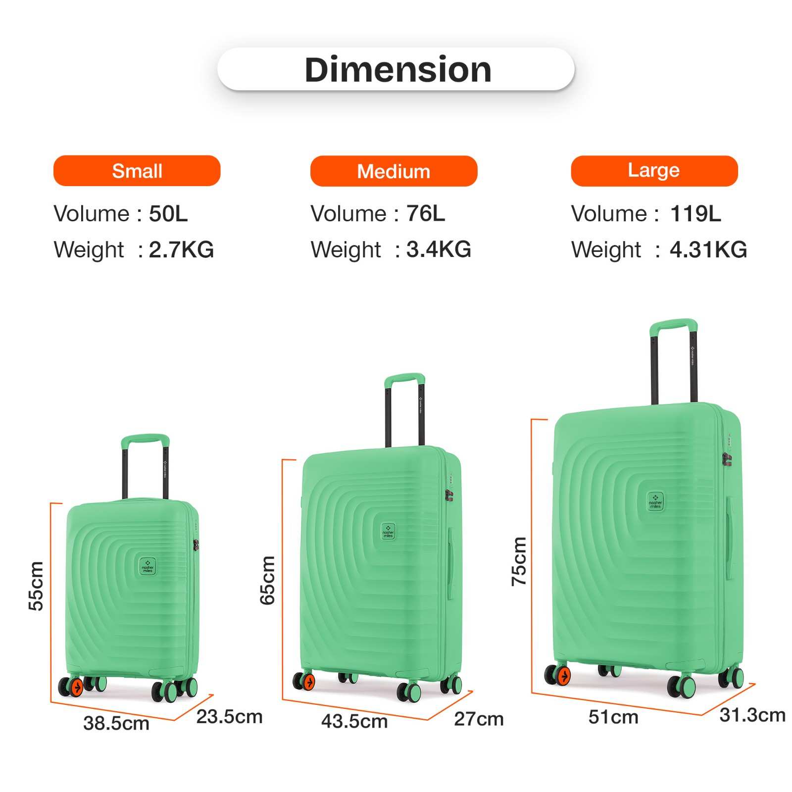 Carry-On Small (S): With a compact 20-inch size, this carry-on suitcase is ideal for travel duration ranging from 1 to 5 days, making it the perfect companion for weekend getaways, business trips, or quick vacations. Suitcase can hold weight up to 8 Kg.
