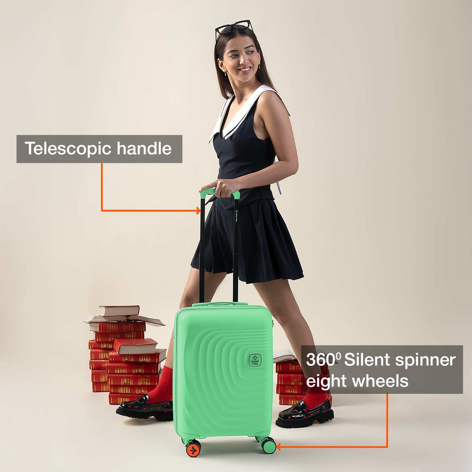 Effortless Maneuverability: The suitcases comes with eight silent spinner wheels that rotate 360-degree for easy maneuverability. The multi-directional design evenly distributes weight, providing unparalleled mobility & glide through airports, train stations and hotel lobbies with ease. Features easy-grab handle on the top.