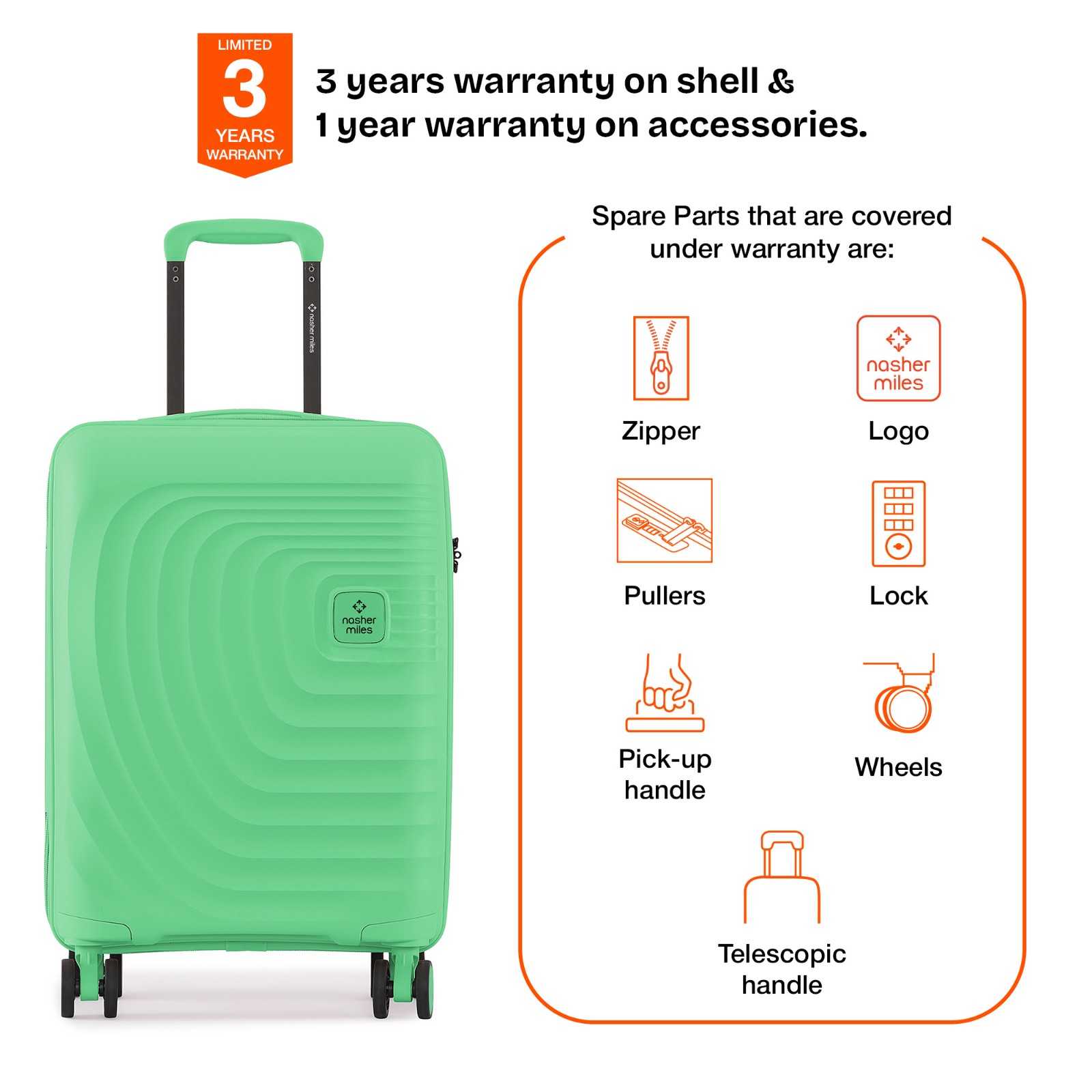 Durable Hard-Shell: Outer material of the luggage trolley is composed of lightweight, long-lasting polypropylene for maximum strength, flexibility, and impact resistance. This suitcase offers protection to keep your belongings safe. The telescopic handle is made of aluminum for easy handling.
