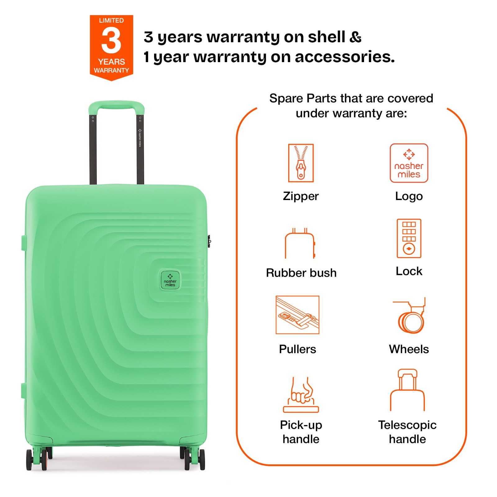 Check-In Large (L): With a 28-inch size, this check-in suitcase is ideal for travel duration lasting than a week, making it the perfect companion for weekend getaways, business trips, or vacations. Suitcase can hold weight up to 20 Kg.