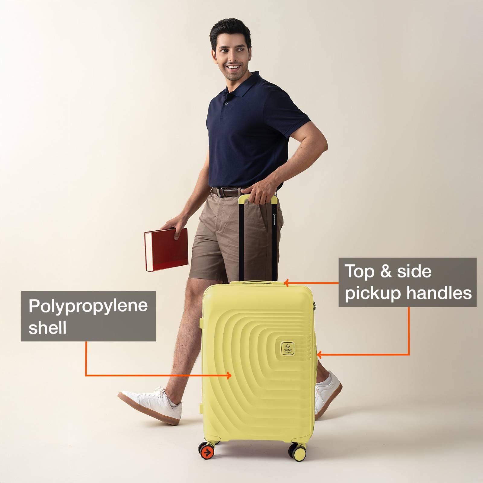Durable Hard-Shell: Outer material of the luggage trolley is composed of lightweight, long-lasting polypropylene for maximum strength, flexibility, and impact resistance. This suitcase offers protection to keep your belongings safe. The telescopic handle is made of aluminum for easy handling.