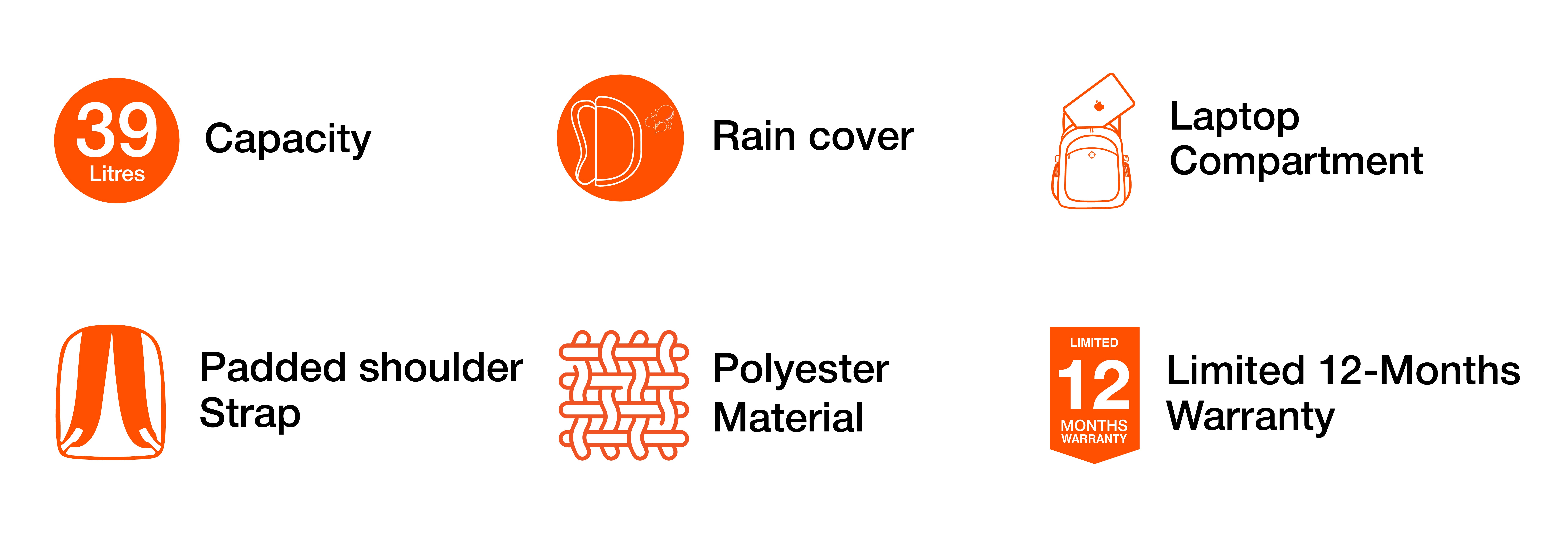 Rain Cover: The bag comes with a rain cover. It can be stored in a hidden pocket at the bottom.
