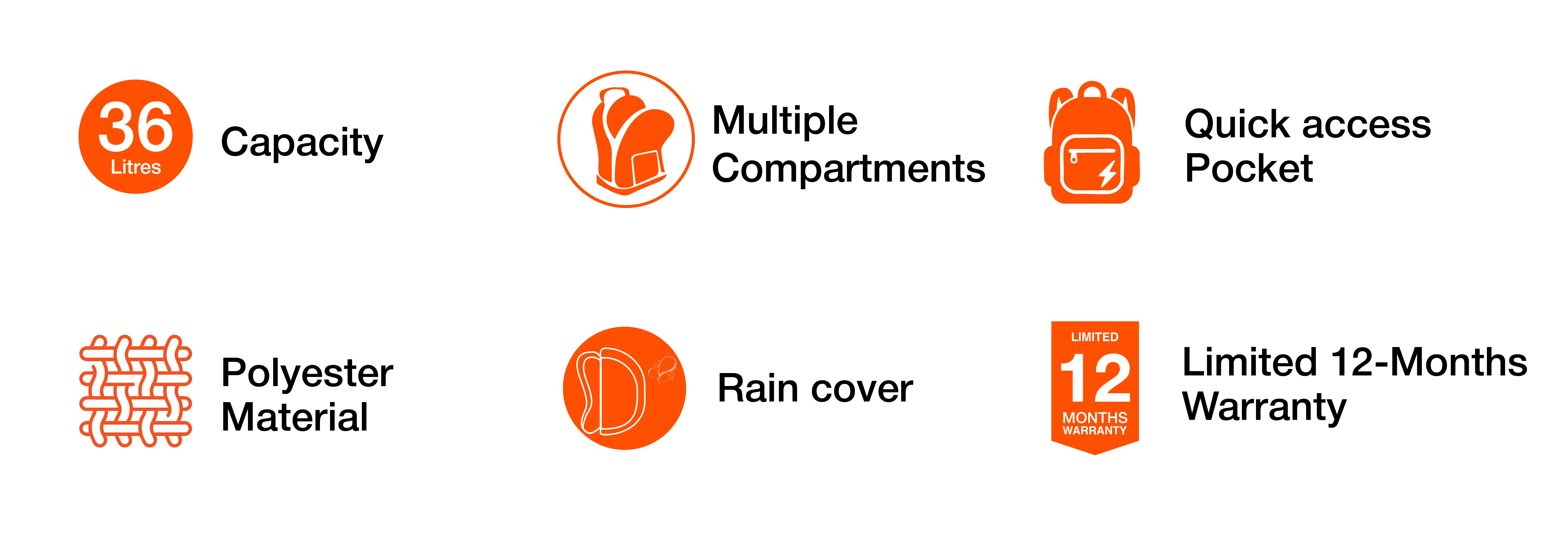 Rain Cover: The bag comes with a rain cover. It can be stored in a hidden pocket at the bottom.