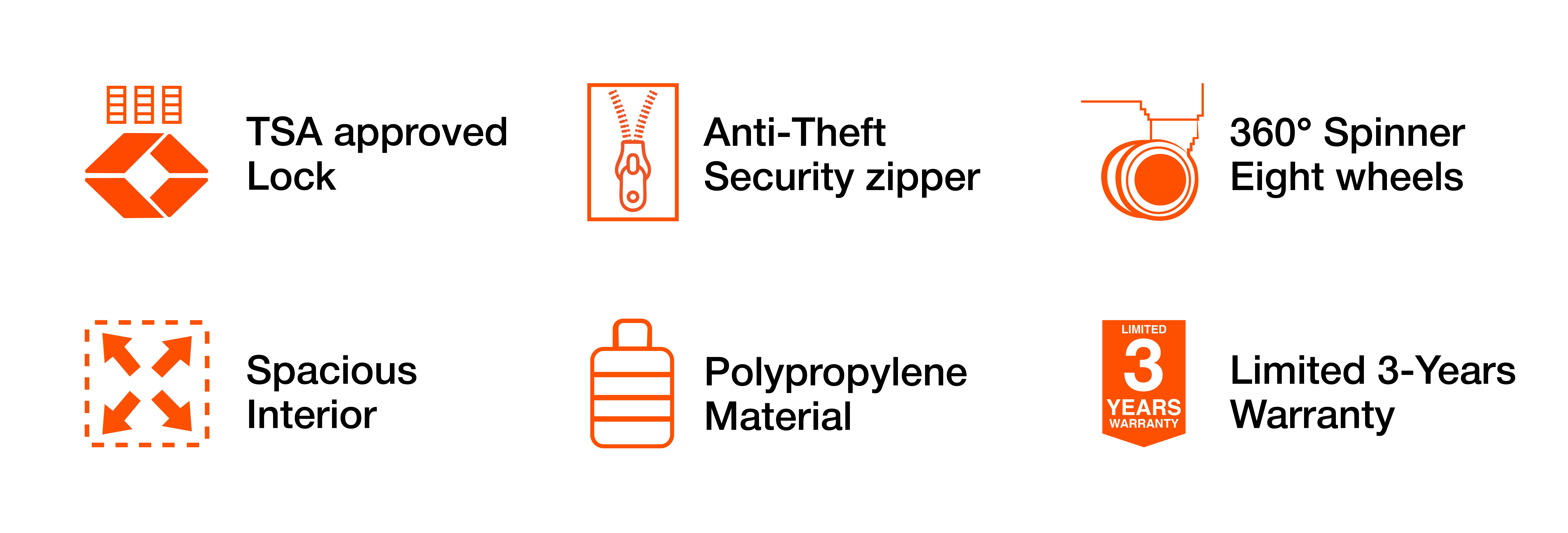 Anti-Theft Zippers: Our lightweight luggage is equipped with advanced anti-theft zippers, designed to prevent unauthorized access and keep your valuables safe during your travels.