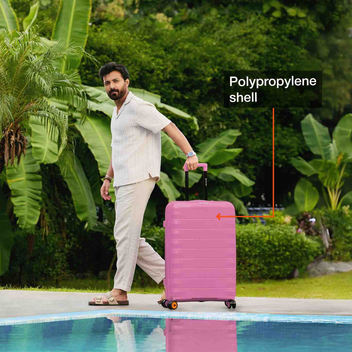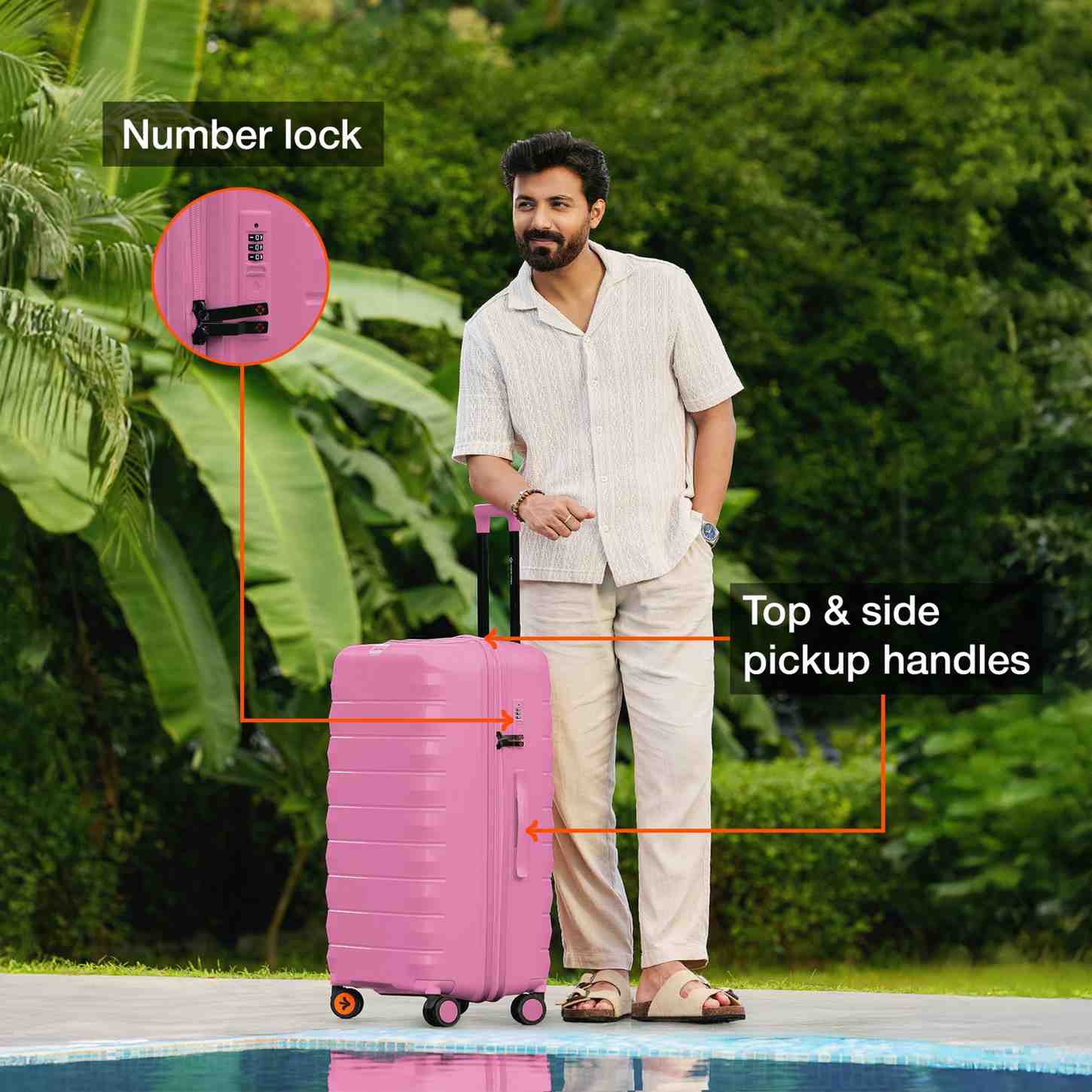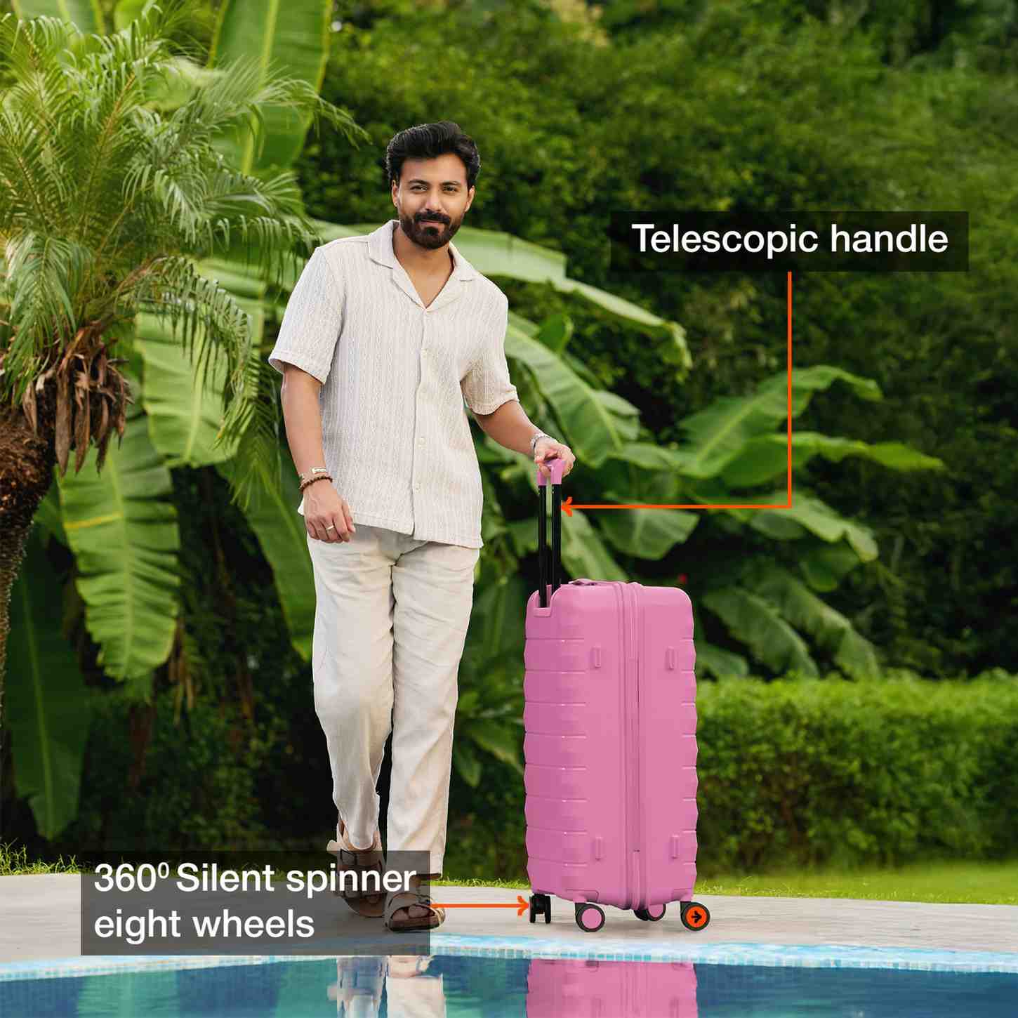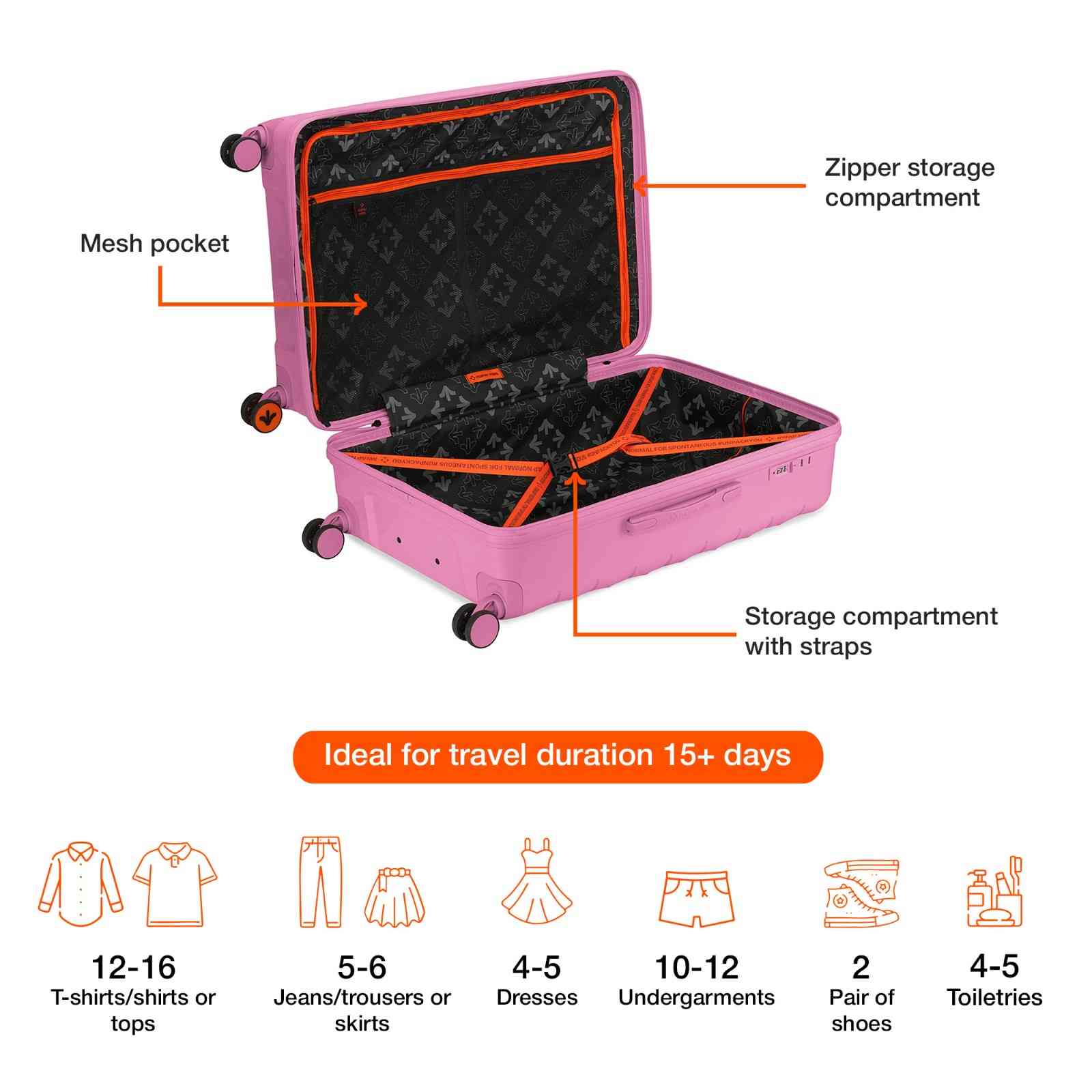 Durable Construction: Outer material of the luggage trolley is designed with high-quality unbreakable polypropylene material for exceptional durability and a lightweight feel. This suitcase offers protection to keep your belongings safe. The telescopic handle is made of aluminum for easy handling.