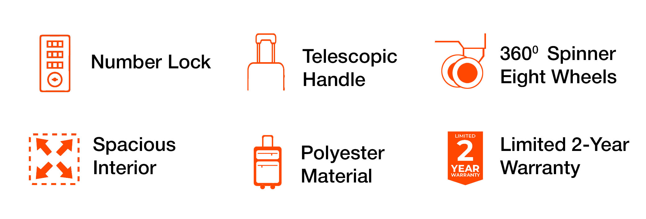 Enjoy smooth and seamless mobility with the 8 silent spinner wheels that rotate 360 degrees, effortlessly moving in any direction you desire. Rest easy knowing your belongings are secure with the separate number lock.