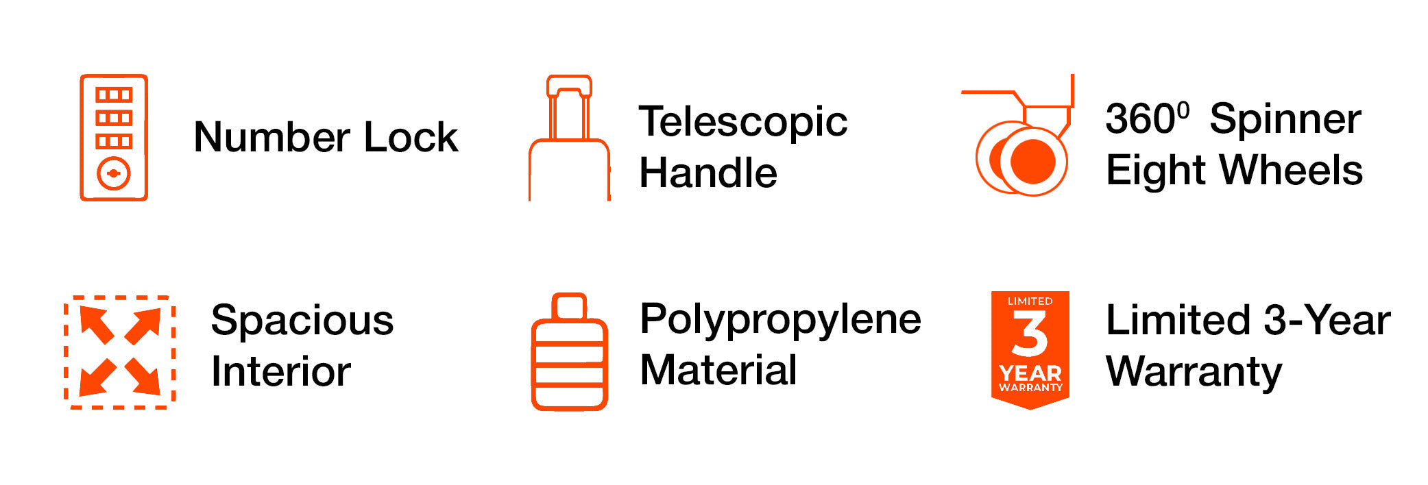 Effortless Maneuverability: The suitcases comes with eight silent spinner wheels that rotate 360-degree for easy maneuverability. The multi-directional design evenly distributes weight, providing unparalleled mobility & glide through airports, train stations and hotel lobbies with ease. Features easy-grab handle on the top.