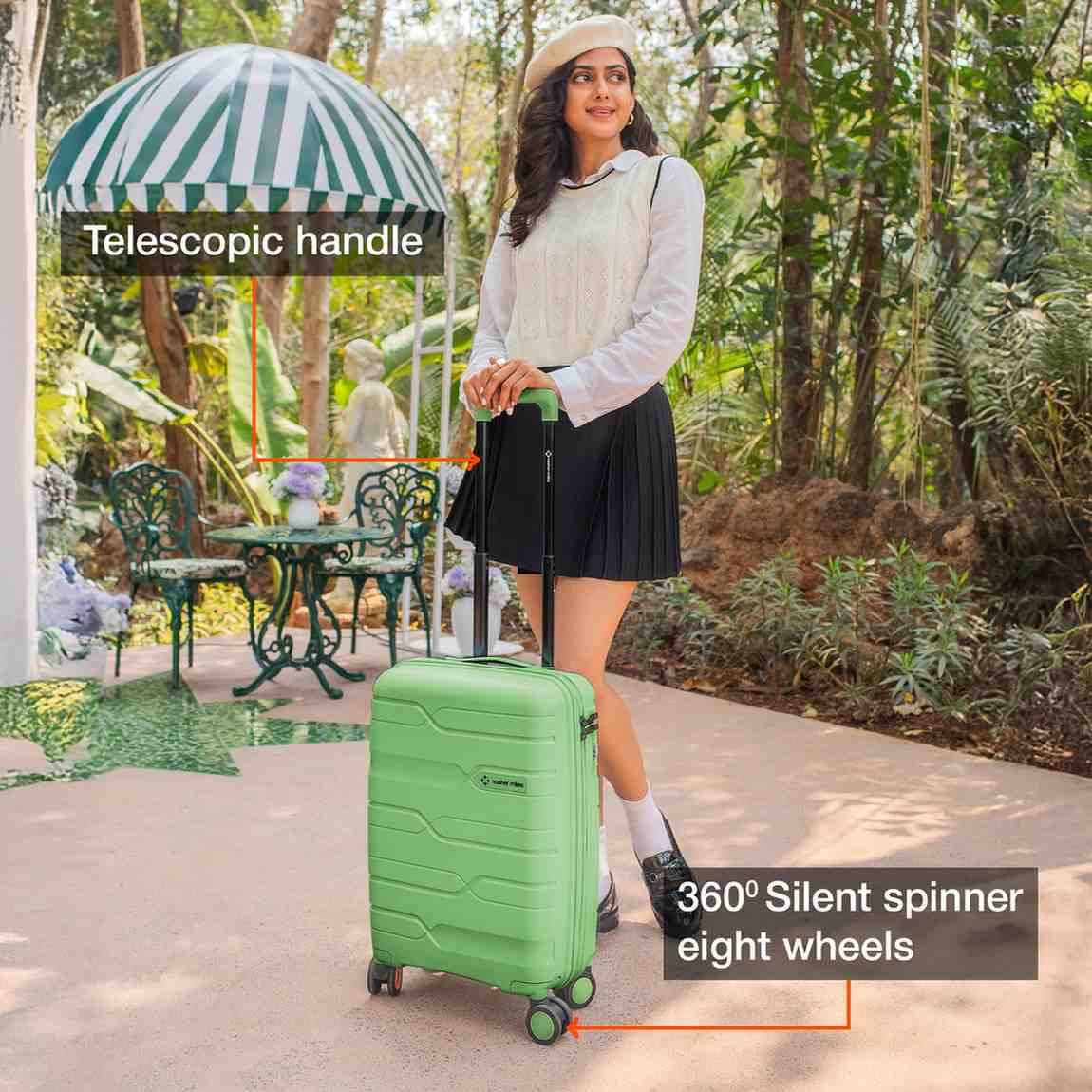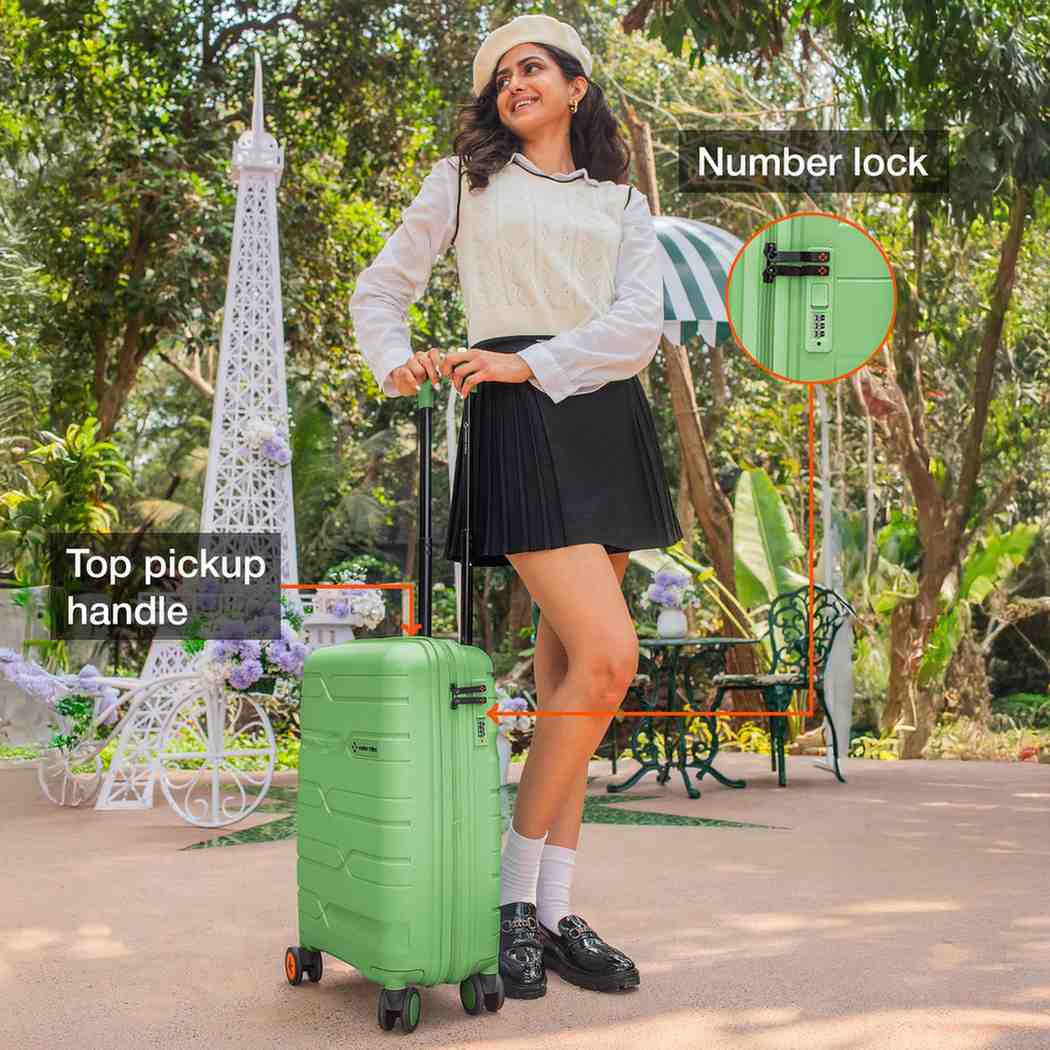 Carry-On Small (S): This 20-inch lightweight, hard-sided cabin trolley bag is perfect for weekend trips or traveling abroad. It is ideal for travels lasting one to five days without the trouble of luggage check-in. Suitcase can hold weight up to 8 kgs.
