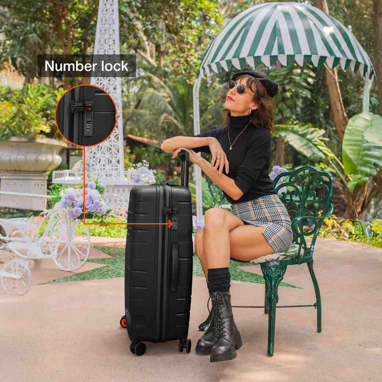 Effortless Mobility: Easy maneuverability via 360-degree, 8-silent spinner wheels is provided for this lightweight series. Features an easy-grab handle on the top and Side. Each bag has a separate number lock (reset code 0-0-0) to ensure the security of your bag.