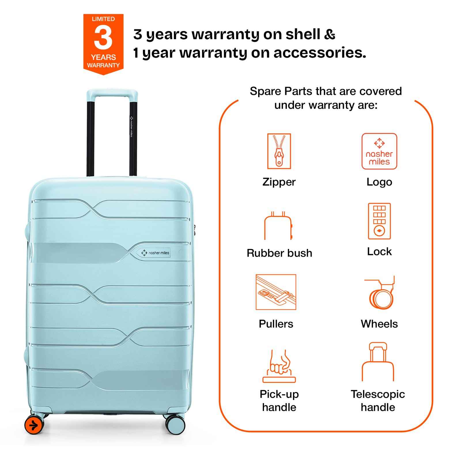 3 Years warranty on shell & 1 year warranty on accessories. Wear & Tear for product under use and scratches are not covered.