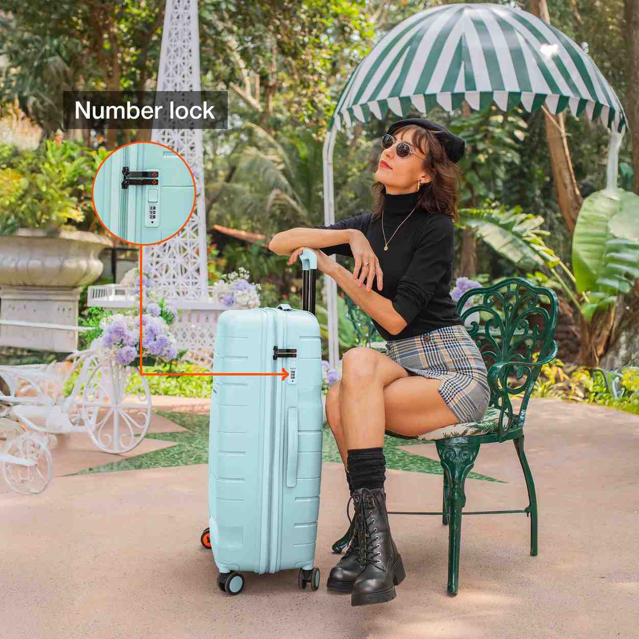 Effortless Mobility: Easy maneuverability via 360-degree, 8-silent spinner wheels is provided for this lightweight series. Features an easy-grab handle on the top and Side. Each bag has a separate number lock (reset code 0-0-0) to ensure the security of your bag.