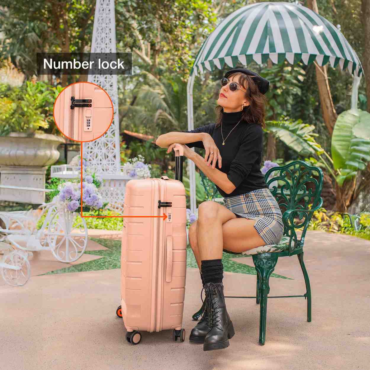 Effortless Mobility: Easy maneuverability via 360-degree, 8-silent spinner wheels is provided for this lightweight series. Features an easy-grab handle on the top and Side. Each bag has a separate number lock (reset code 0-0-0) to ensure the security of your bag.