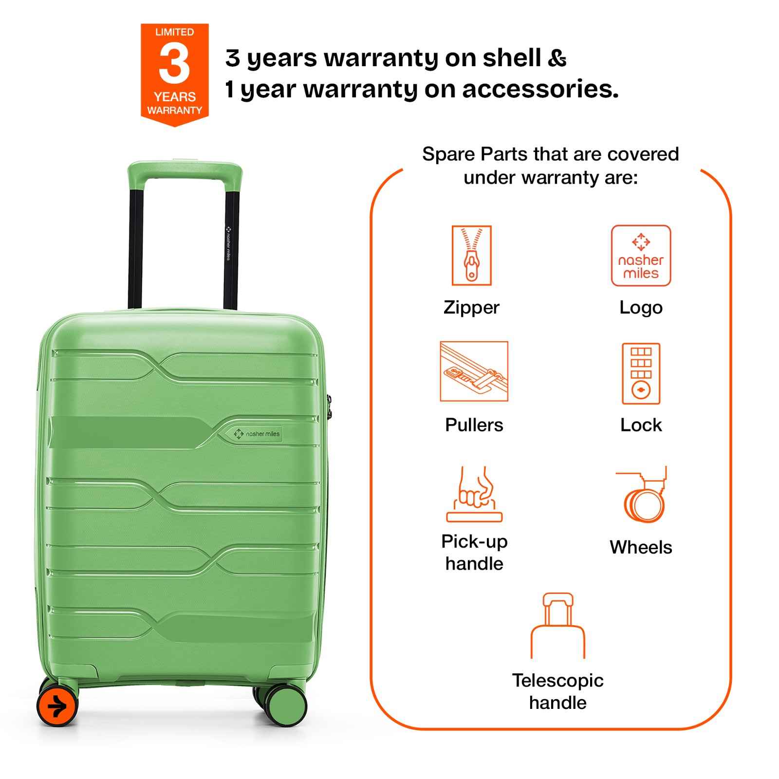 3 Years warranty on shell & 1 year warranty on accessories. Wear & Tear for product under use and scratches are not covered.