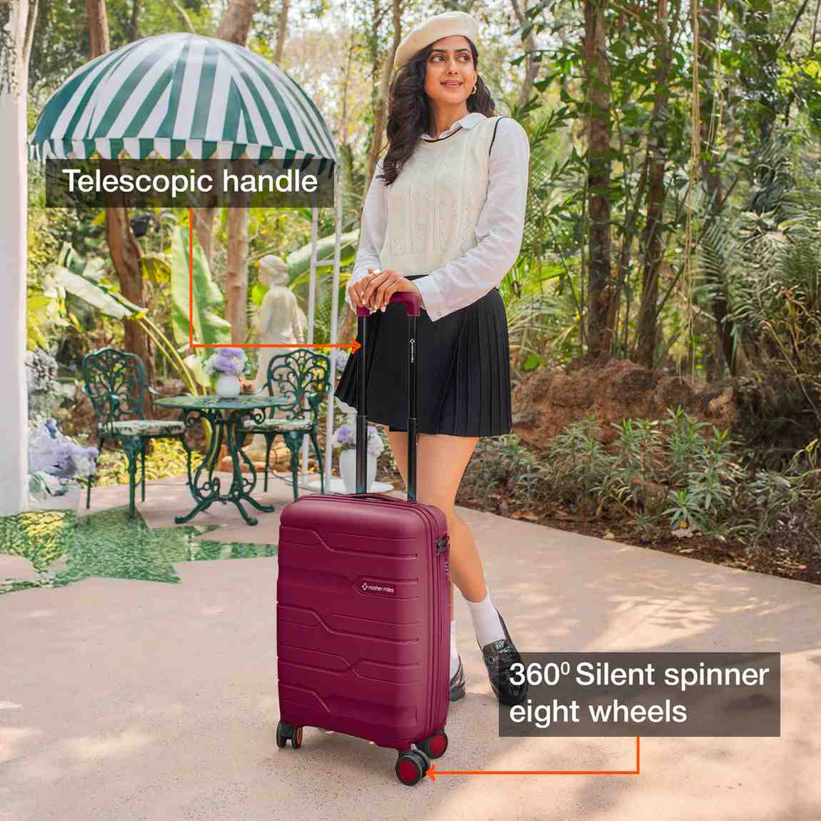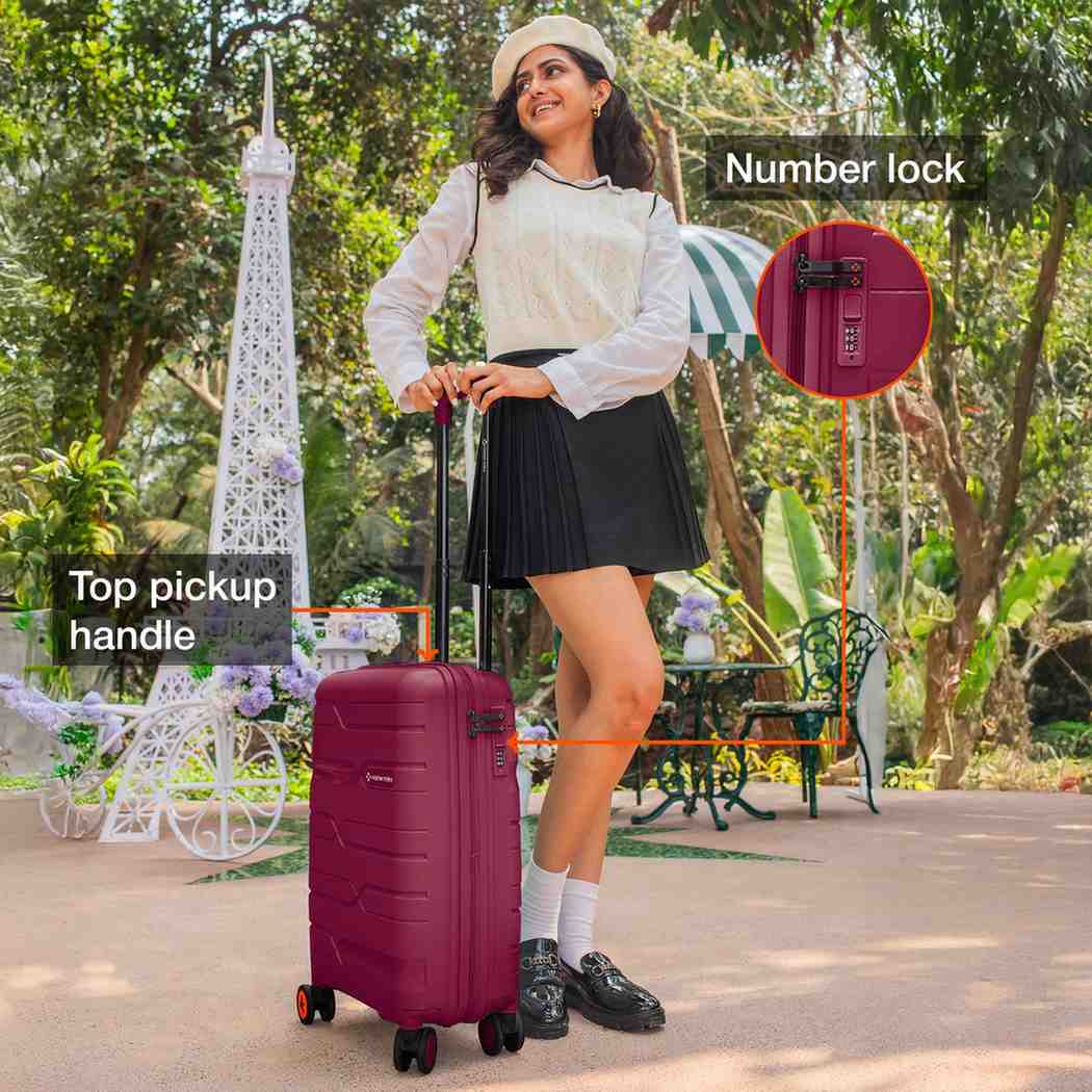 Carry-On Small (S): This 20-inch lightweight, hard-sided cabin trolley bag is perfect for weekend trips or traveling abroad. It is ideal for travels lasting one to five days without the trouble of luggage check-in. Suitcase can hold weight up to 8 kgs.