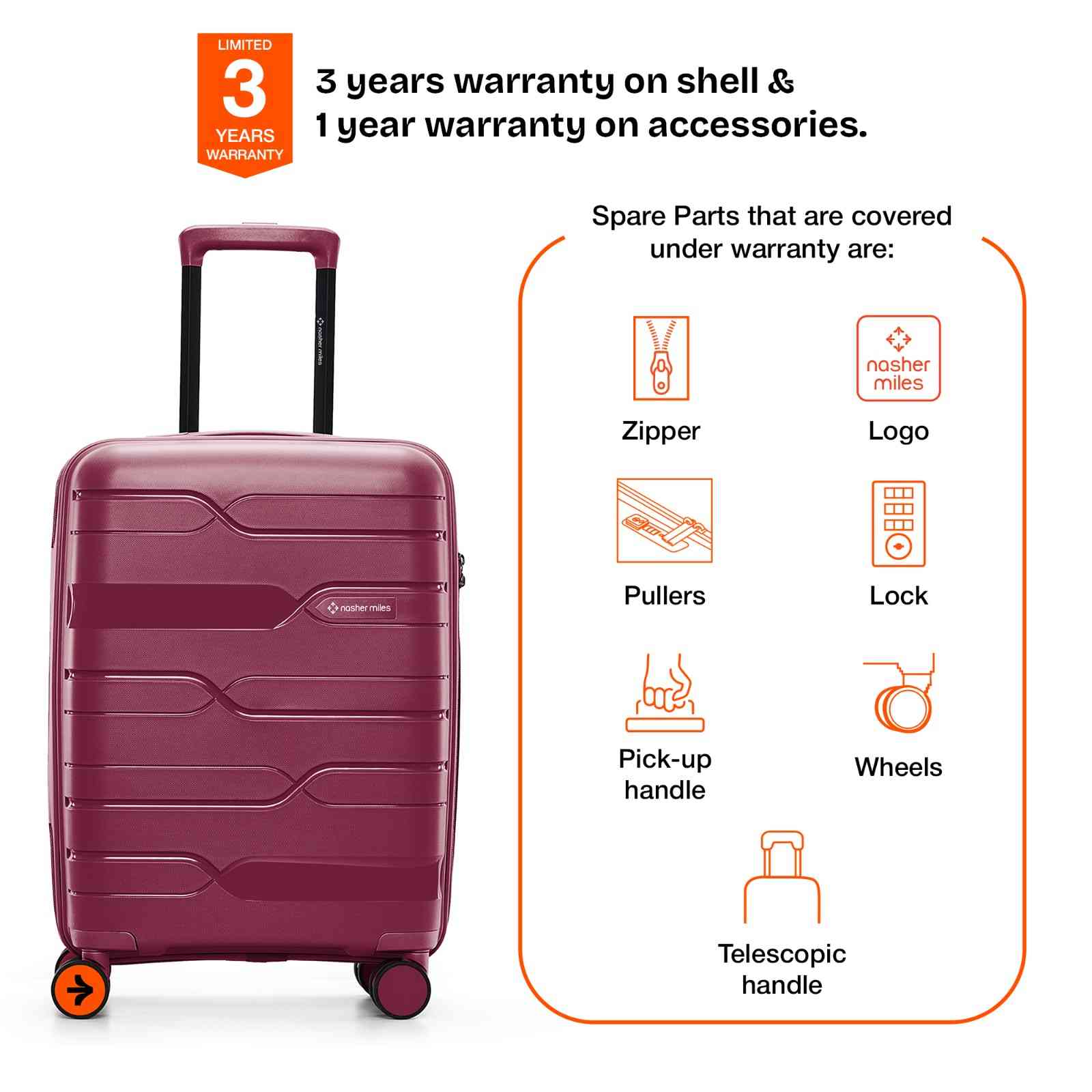 3 Years warranty on shell & 1 year warranty on accessories. Wear & Tear for product under use and scratches are not covered.