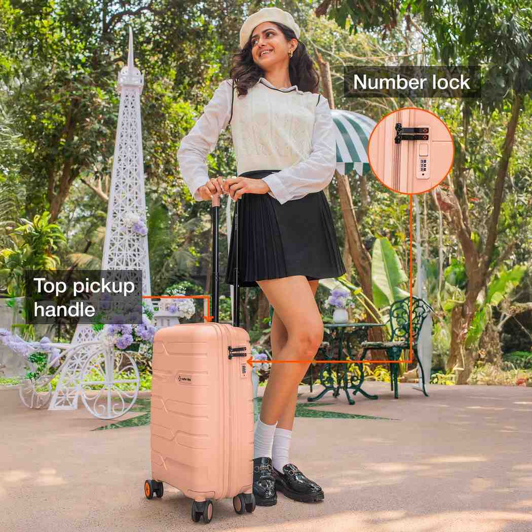Carry-On Small (S): This 20-inch lightweight, hard-sided cabin trolley bag is perfect for weekend trips or traveling abroad. It is ideal for travels lasting one to five days without the trouble of luggage check-in. Suitcase can hold weight up to 8 kgs.