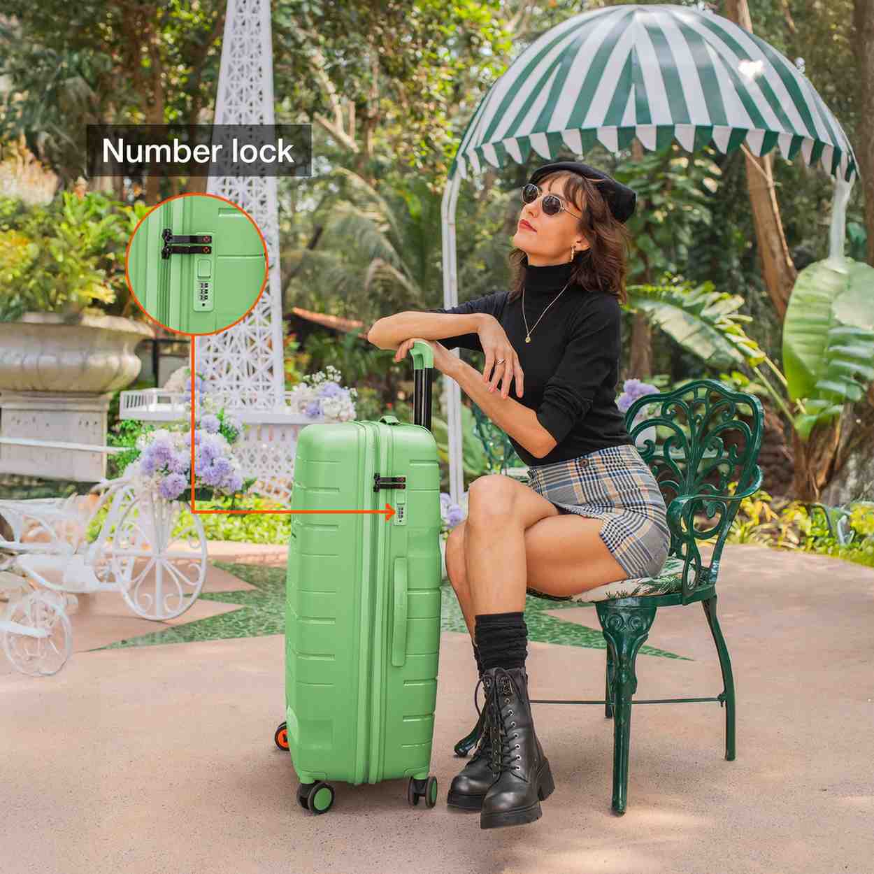 Effortless Mobility: Easy maneuverability via 360-degree, 8-silent spinner wheels is provided for this lightweight series. Features an easy-grab handle on the top and Side. Each bag has a separate number lock (reset code 0-0-0) to ensure the security of your bag.