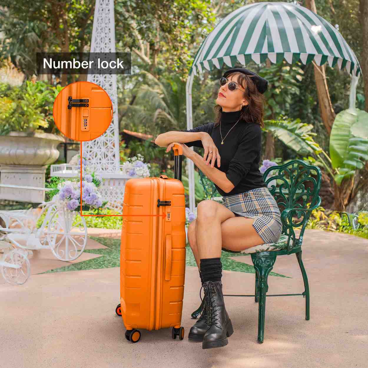 Effortless Mobility: Easy maneuverability via 360-degree, 8-silent spinner wheels is provided for this lightweight series. Features an easy-grab handle on the top and Side. Each bag has a separate number lock (reset code 0-0-0) to ensure the security of your bag.
