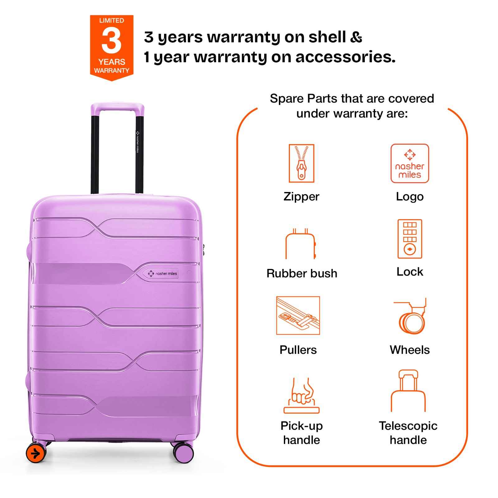 3 Years warranty on shell & 1 year warranty on accessories. Wear & Tear for product under use and scratches are not covered.