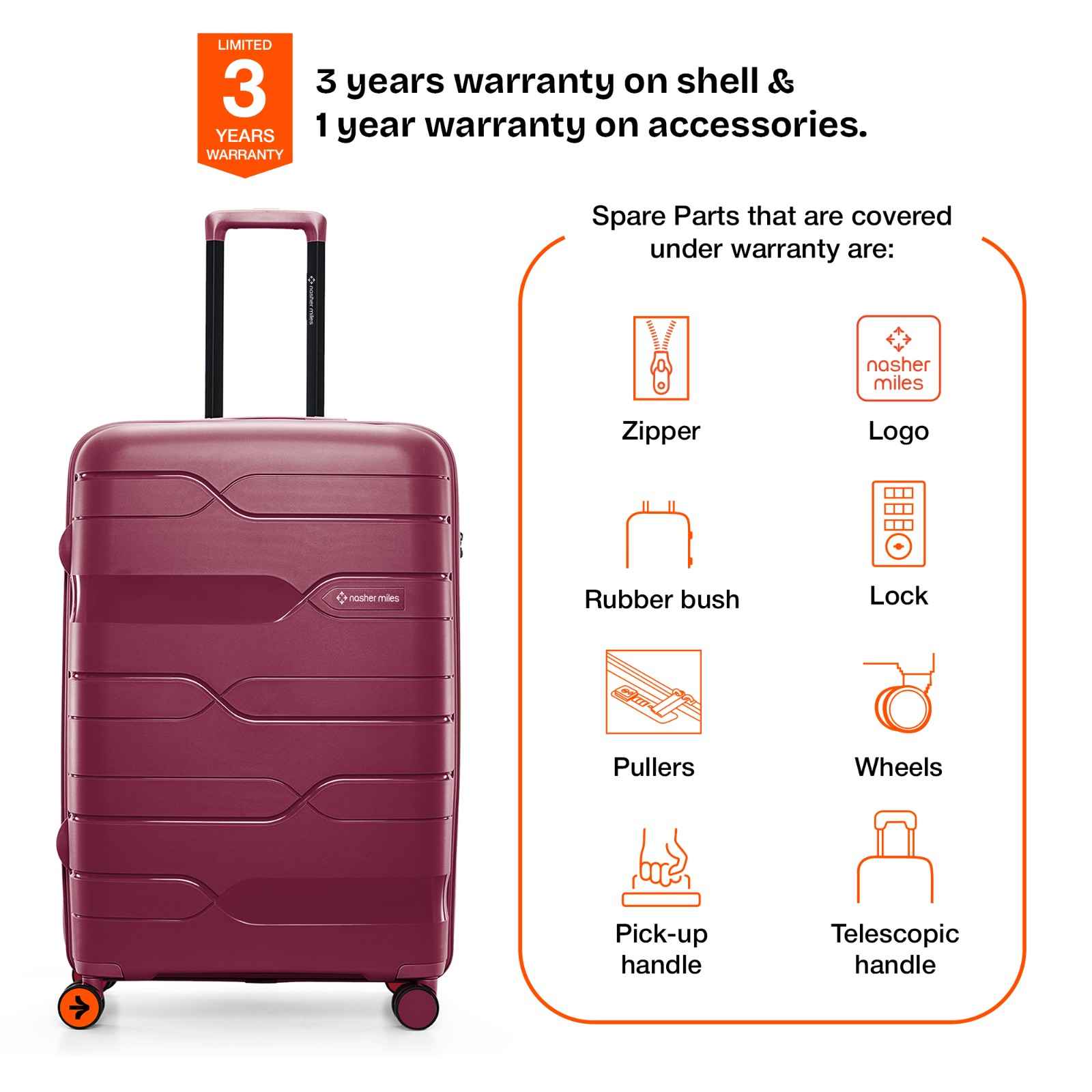 3 Years warranty on shell & 1 year warranty on accessories. Wear & Tear for product under use and scratches are not covered.