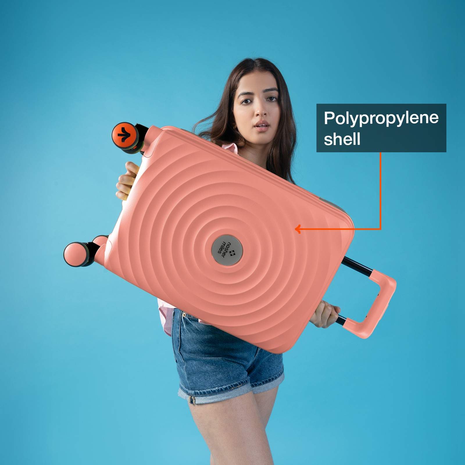 Unbreakable Shell: Luggage is made from 100% polypropylene which is very resilient, durable and extra lightweight. It absorbs impact by flexing while under stress then popping back to its original shape, eliminating dents and dings while protecting its contents.