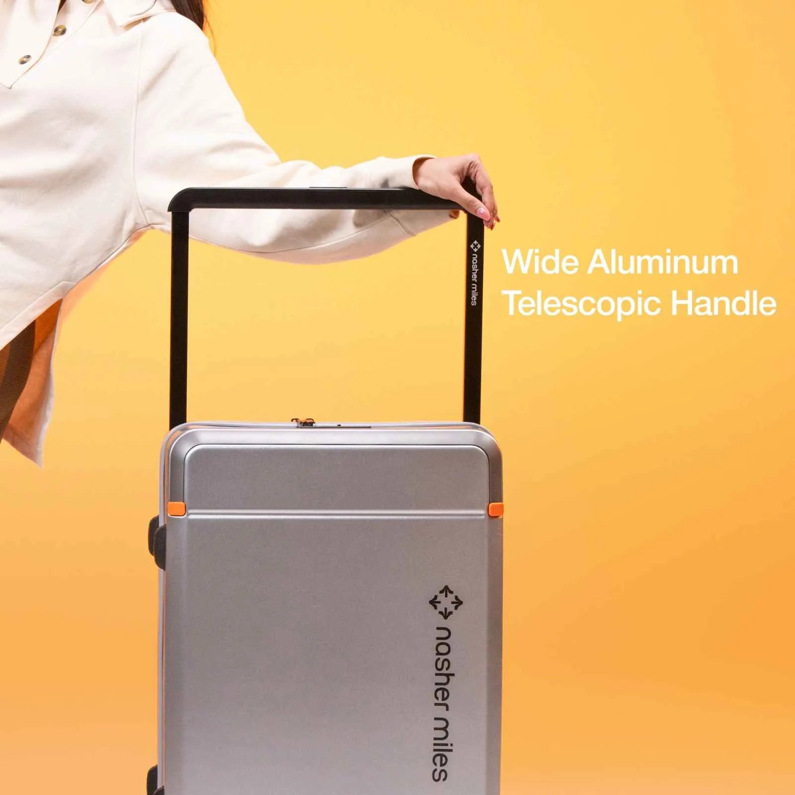 Push Glide Trolley with Wide Aluminium Telescopic Handle: Navigate effortlessly with the super-silent 8 spinner wheels and a wide push-glide aluminium telescopic handle. Designed for smooth manoeuvrability, this trunk-style luggage ensures maximum comfort and control, making it easy to glide through airports and bustling streets. The peach-skin lining adds a touch of elegance to your travel experience.
