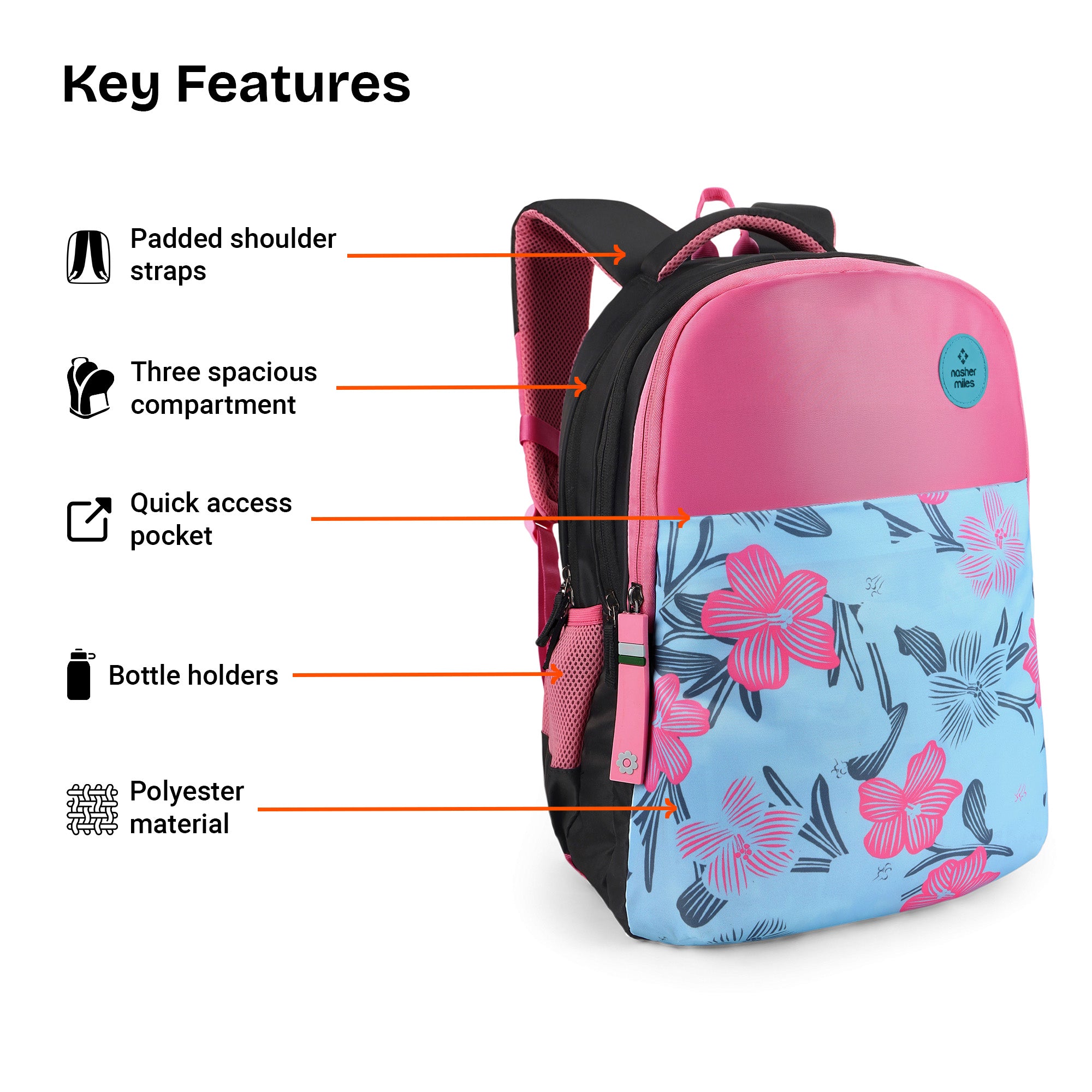 Sturdy Construction: Crafted from durable polyester fabric, this backpack is built to withstand daily wear and frequent use. Its strong structure retains shape while keeping your essentials protected, making it ideal for office commutes, college routines, and everyday travel.