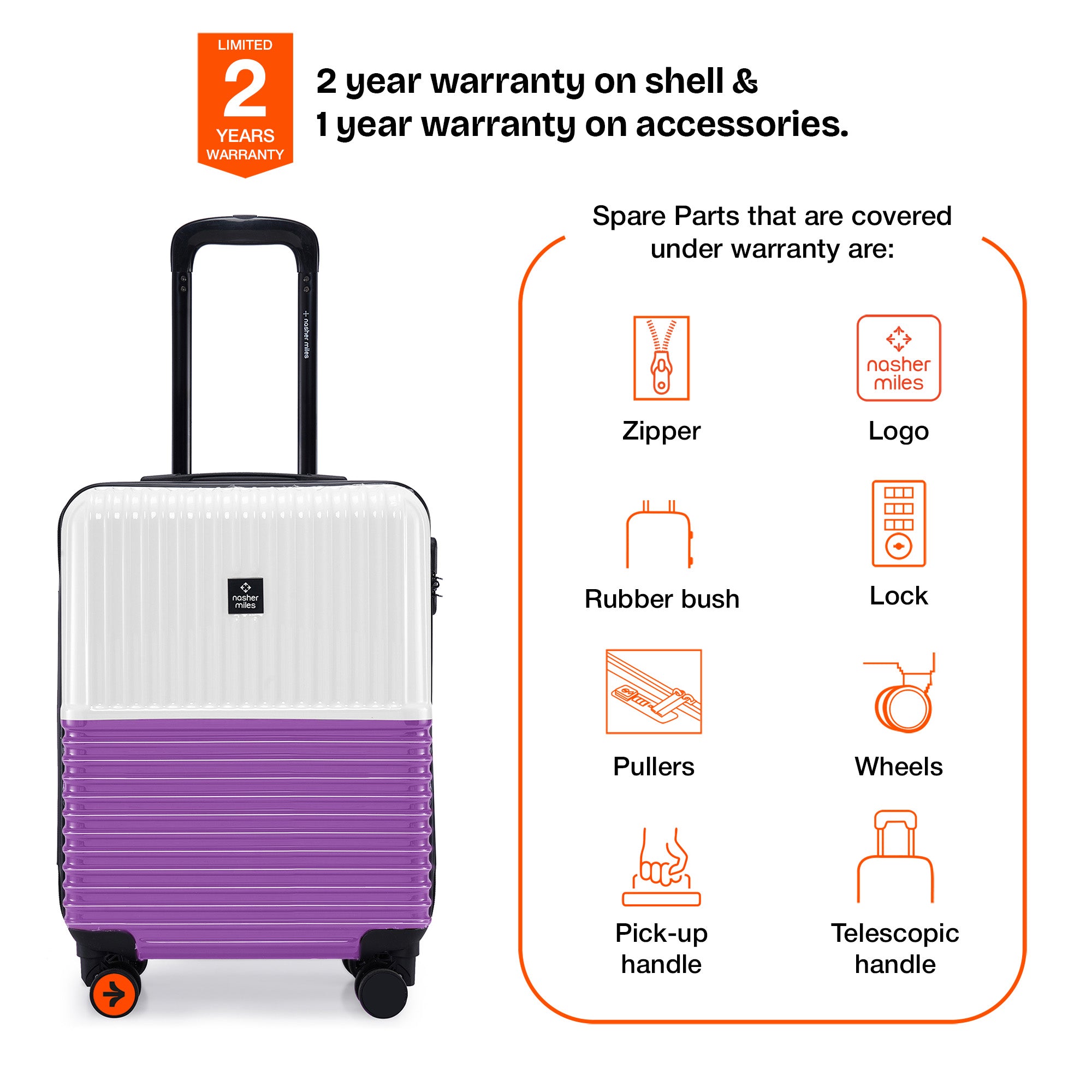 2 Years warranty on shell & 1 year warranty on accessories.Wear & Tear for product under use and scratches are not covered.