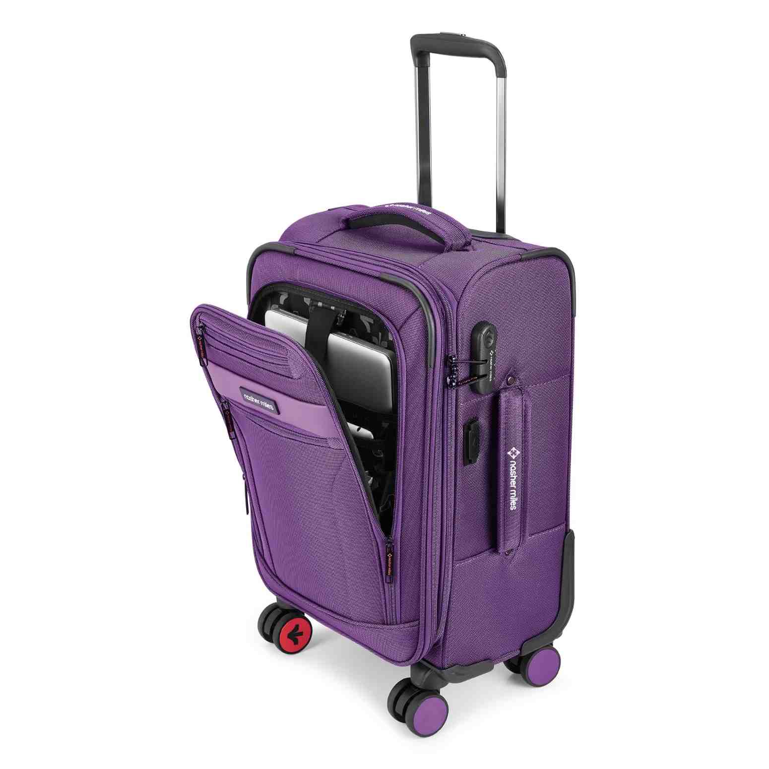 Front pockets for easy access and a double USB cable available in the cabin bag. Spacious main compartment to keep your clothes, shoes and travel essentials. Fully lined roomy interior with the down elasticated straps and zippered divider to secure contents and easy organization.