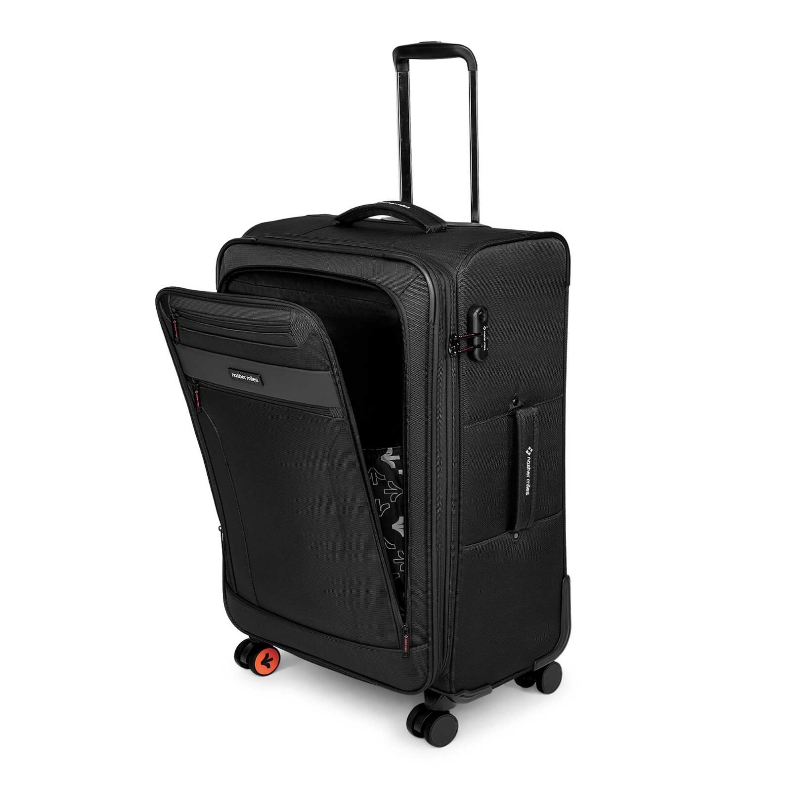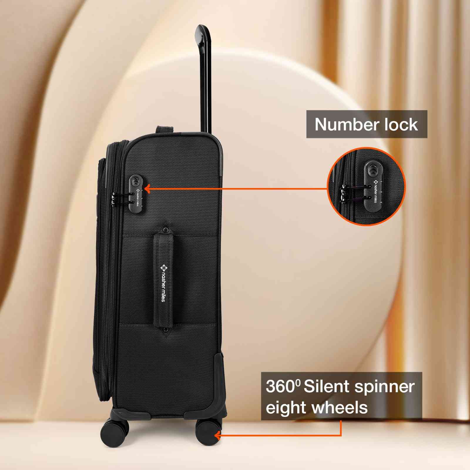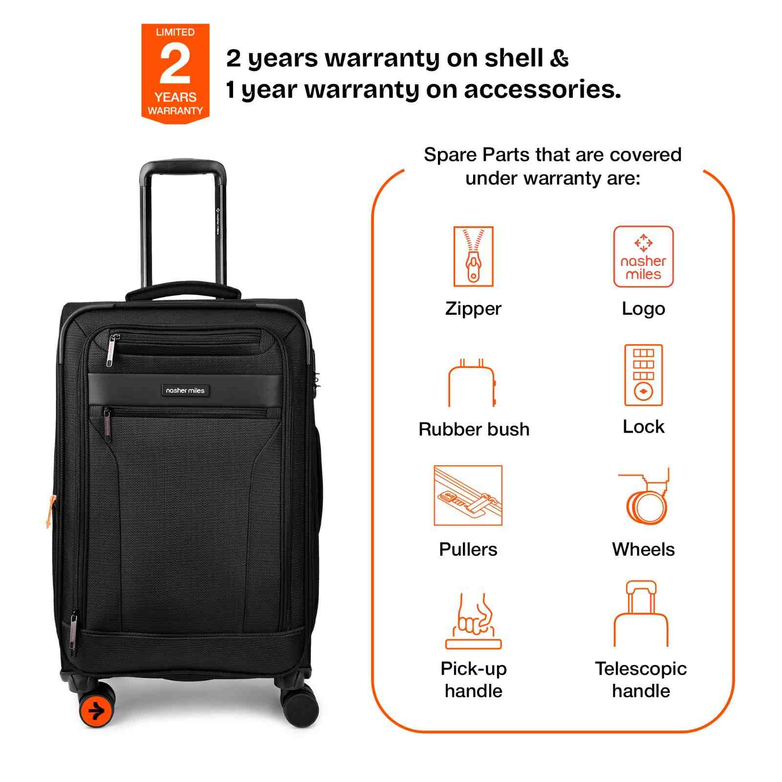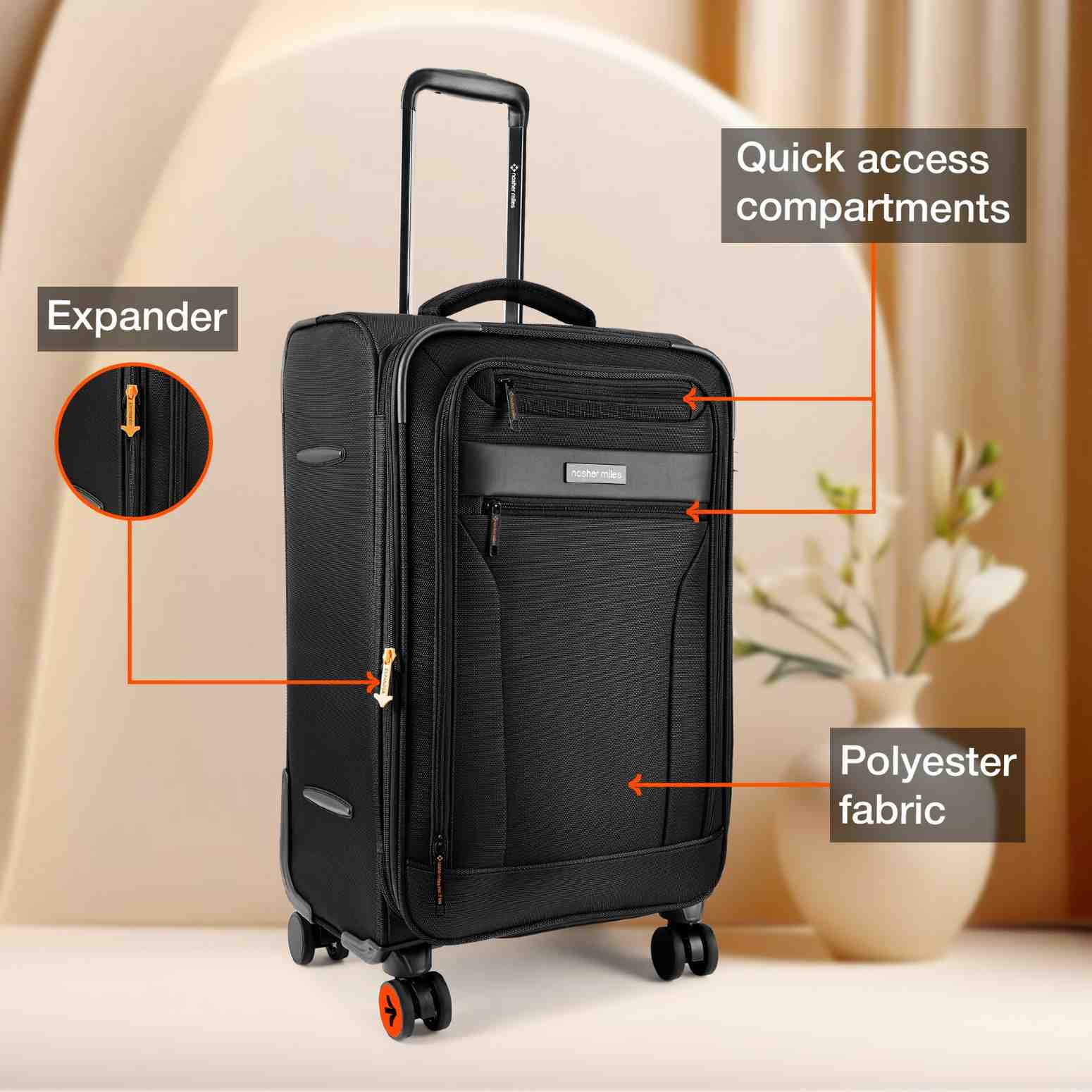 Luggage is made from Dobby Nylon and Micro PU front which makes it very resilient, durable and lightweight. Nylon is the strongest of materials when it comes to soft bags. It comes with an expander option of up to 25% more packing capacity when needed.