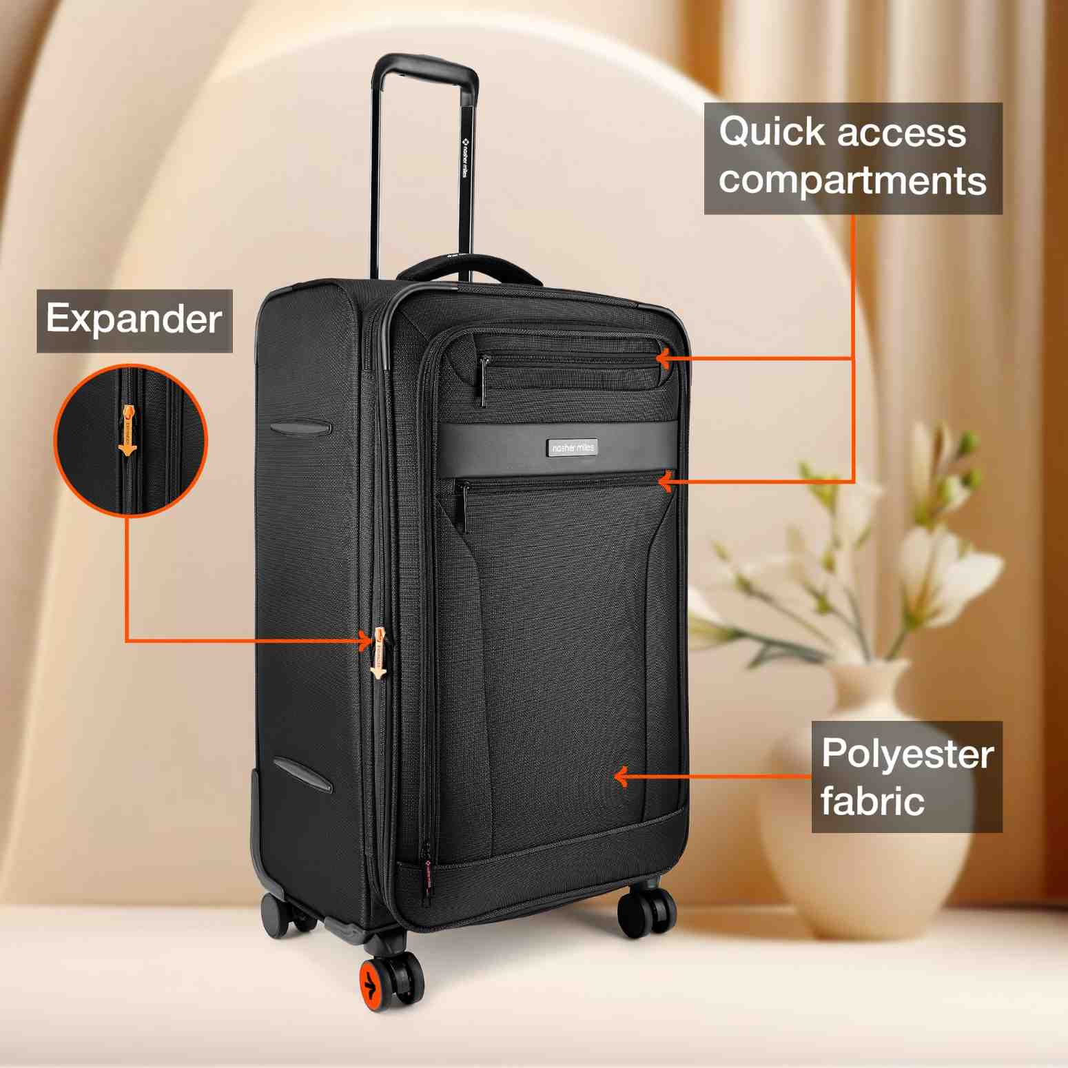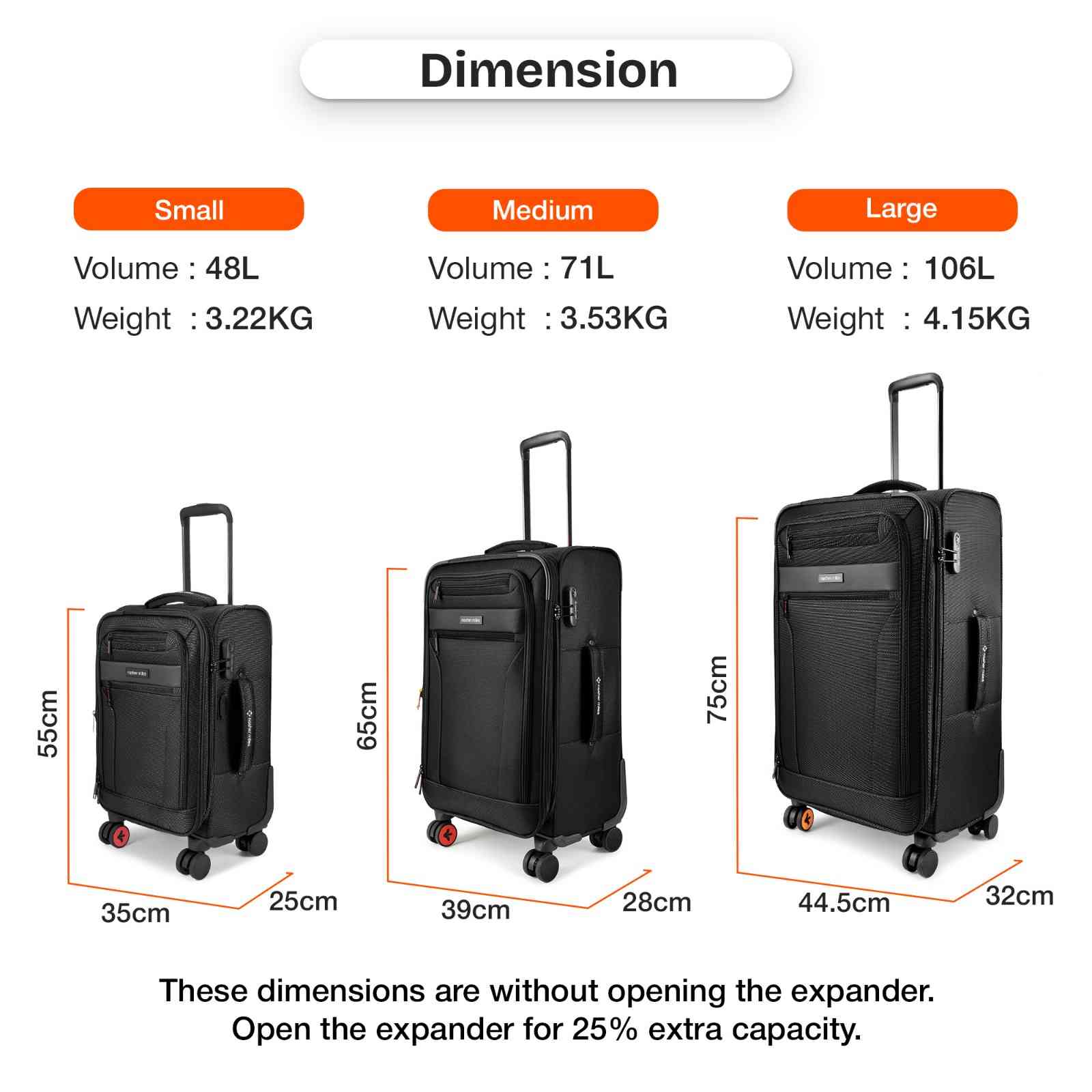 Luggage is made from Gucci Nylon with Dobby and Micro PU front which makes it very resilient, durable and lightweight . It comes with an expander option of up to 25% more packing capacity when needed. Front pockets for easy access.