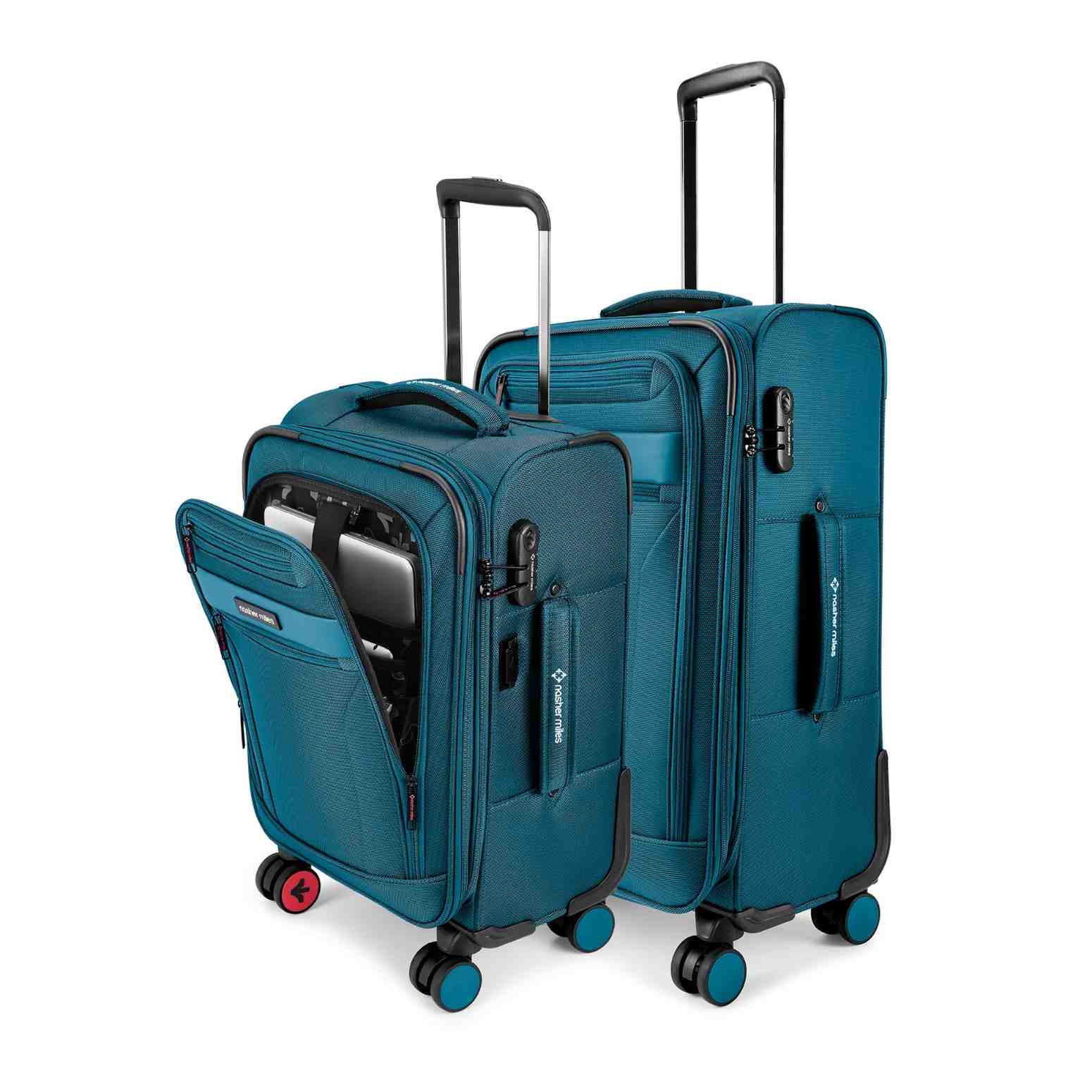 The luggage is two-toned and sports a stylish design on the front. Luggage is made from Dobby Nylon and Micro PU front which makes it very resilient, durable and lightweight. Nylon is the strongest of materials when it comes to soft bags.
