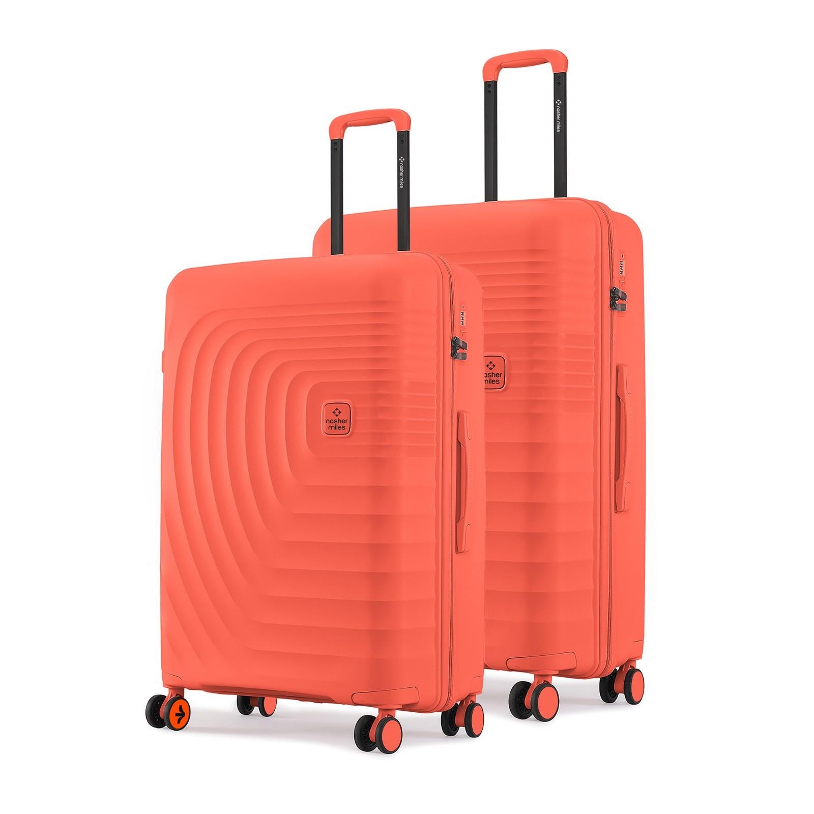 Luggage Set: Hard-sided 2-piece luggage set, includes the following sizes: Medium: 24-inch & Large: 28-inch. These suitcases are ideal for travel lasting than a week, making it the perfect companion for weekend getaways, business trips, or vacations. Suitcases can hold weight up to 15-20 Kgs.