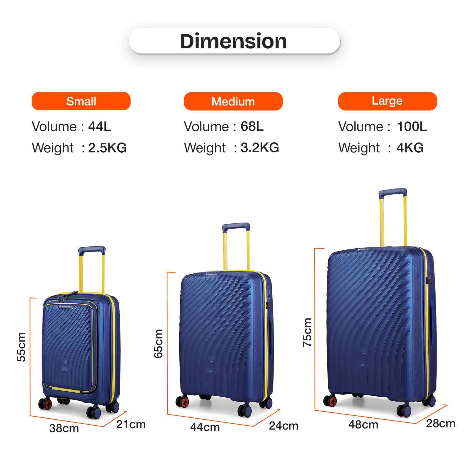 Check-In Medium (M): With a 24-inch size, this check-in suitcase is ideal for travel duration ranging from 5-7 days, making it the perfect companion for weekend getaways, business trips, or vacations. Despite its sturdy build, the luggage remains lightweight, ensuring easy portability while holding up to 15 kg of weight.