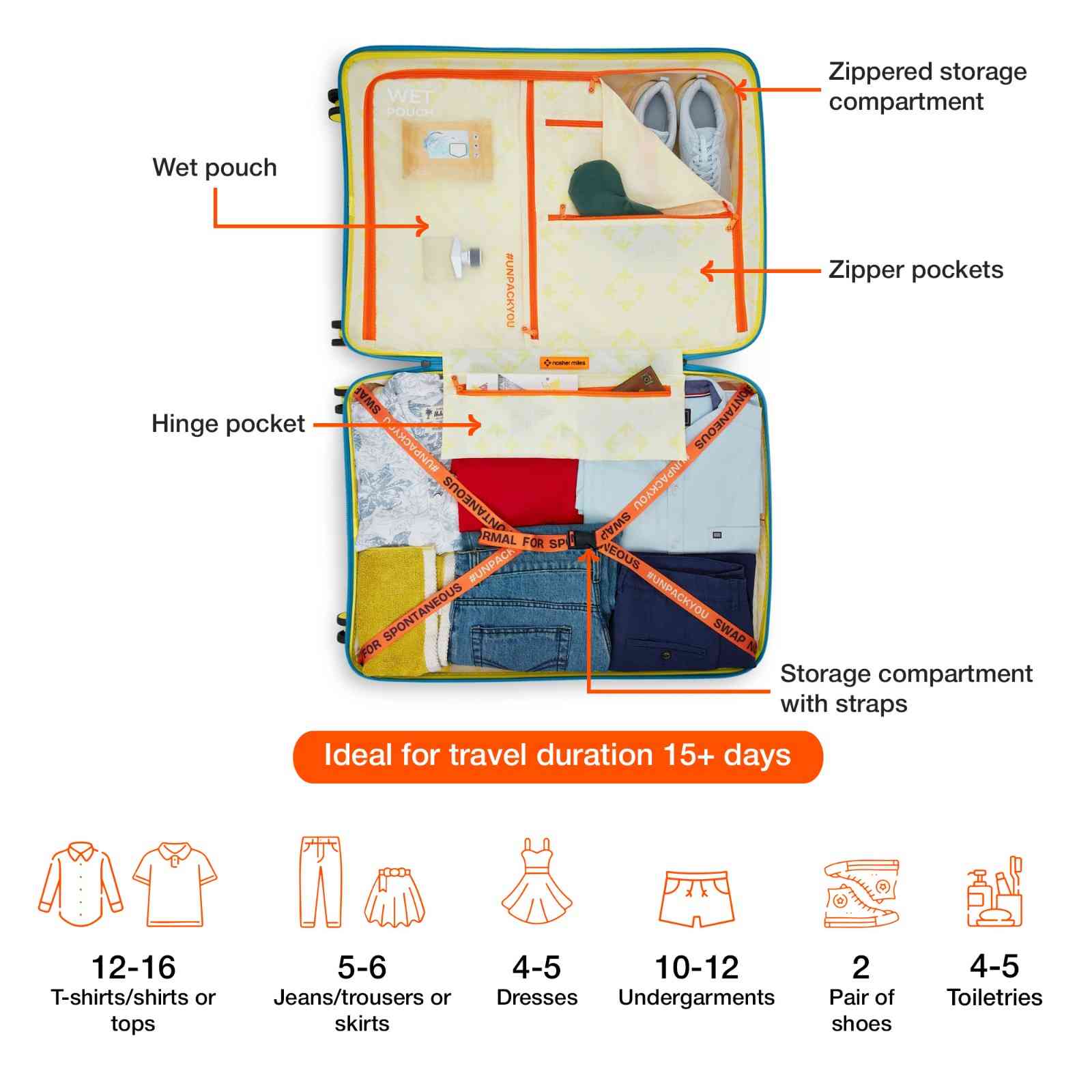 Built-In TSA Lock: Travel with confidence thanks to the integrated TSA lock, designed to keep your suitcase securely locked while allowing authorized airport security personnel to inspect your luggage without causing damage. This feature ensures your belongings stay safe and intact throughout your journey, whether you're flying domestically or internationally.