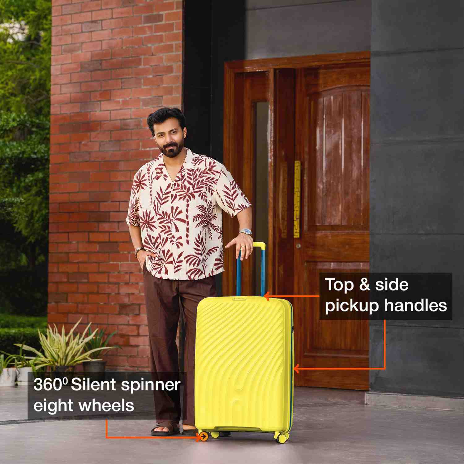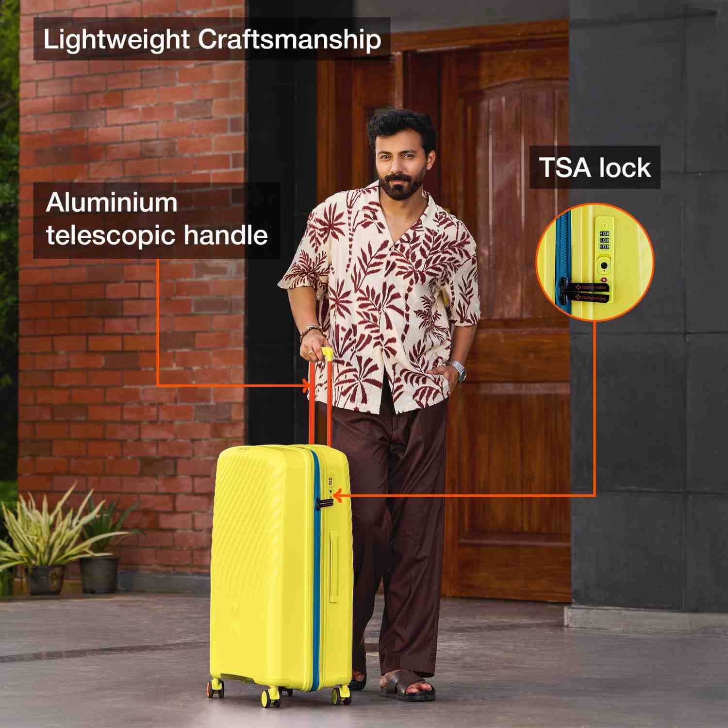 Durable & Effortless Mobility: Crafted from high-strength, impact-resistant polypropylene, this trolley bag is built to endure the rigors of frequent travel without adding extra weight. Designed for seamless mobility, it features eight 360-degree spinner wheels and a premium aluminum telescopic handle deliver smooth maneuverability and comfortable handling on every journey—whether navigating crowded airports, busy train stations, or uneven hotel surfaces.