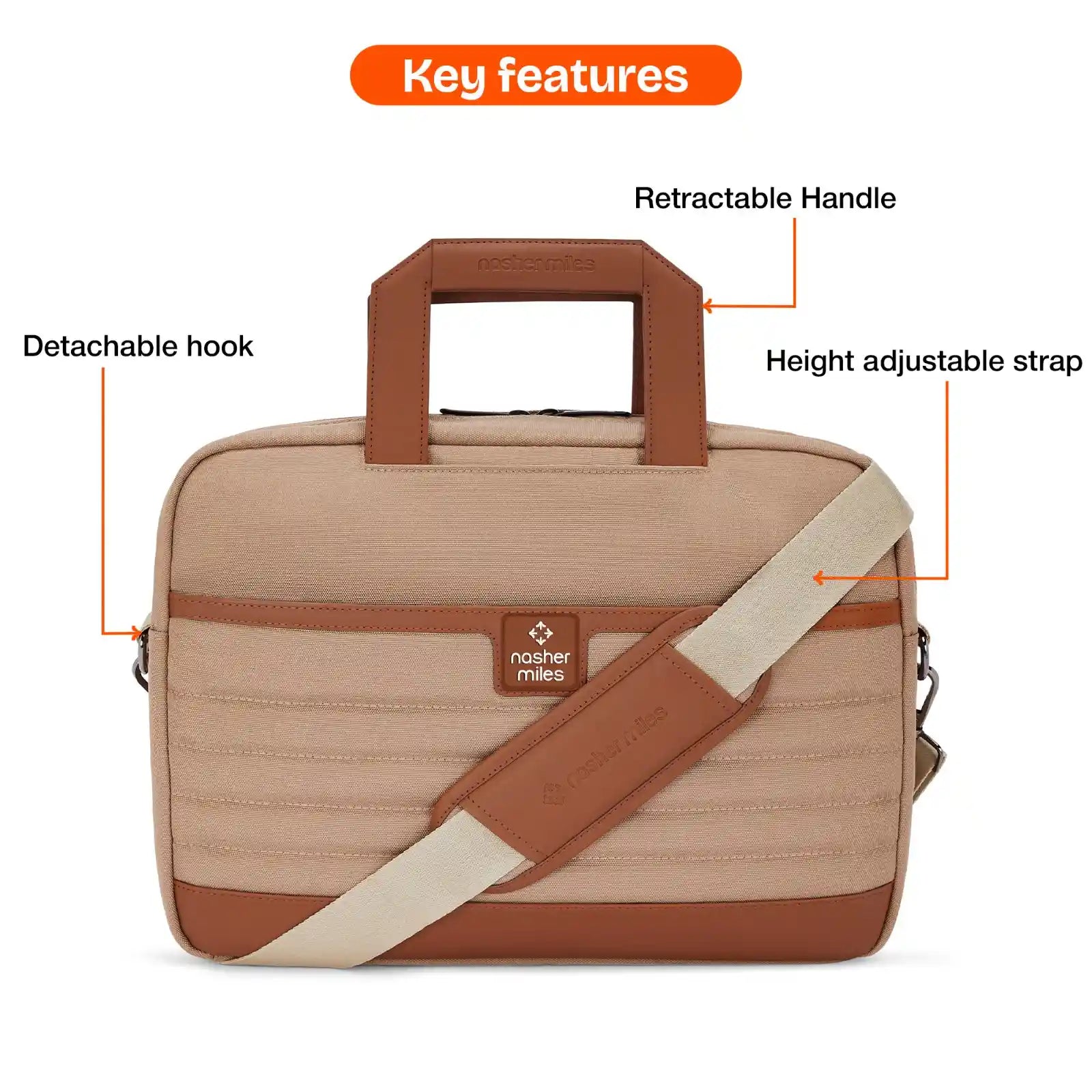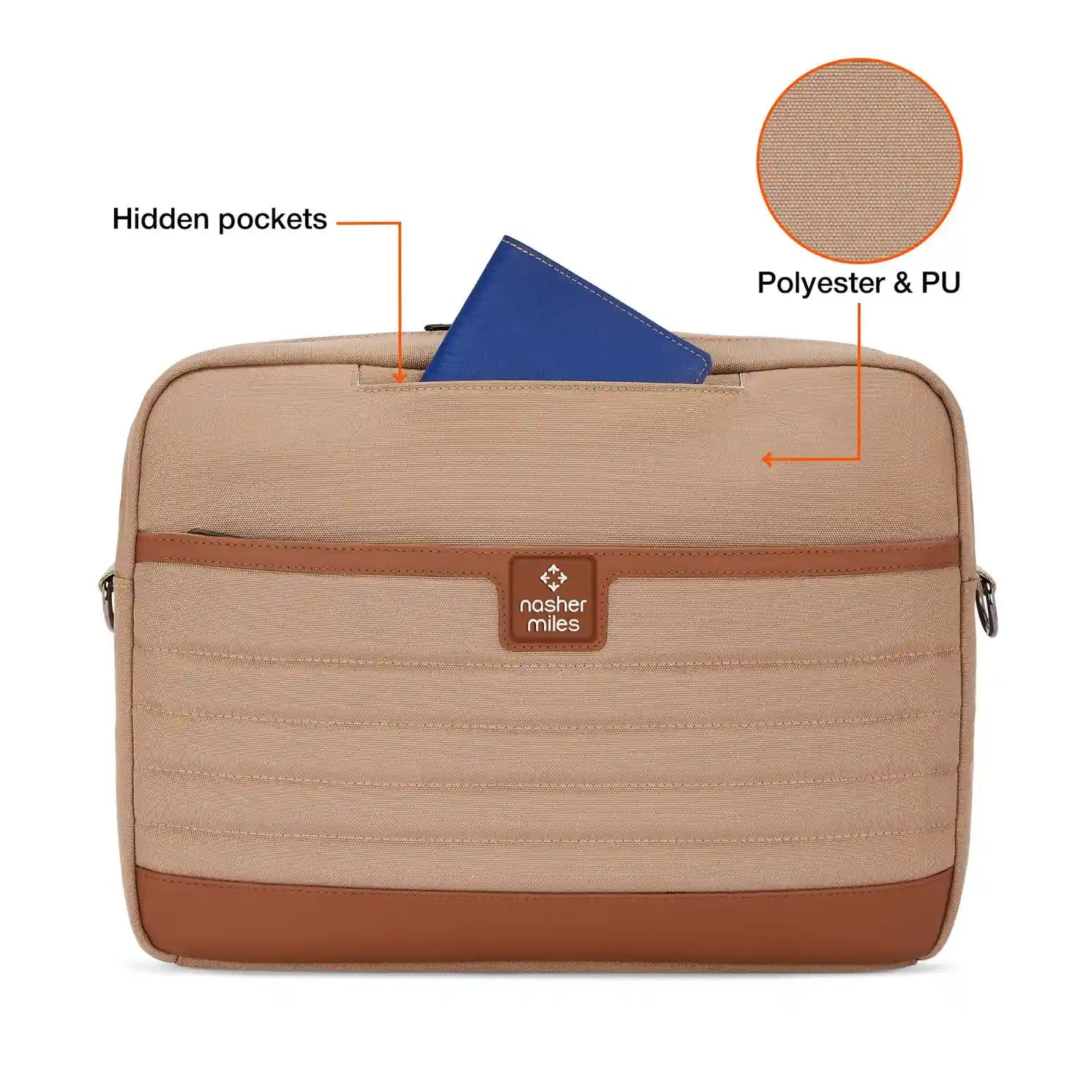 Protective Laptop Compartment: The messenger bag is equipped with a dedicated padded compartment that securely fits laptops up to 15.6 inches. The padded sleeve absorbs shocks and prevents scratches, ensuring your device remains safe during commutes, office hours, or travel. A separate tablet holder adds extra functionality, protecting your iPad or e-reader with equal care.